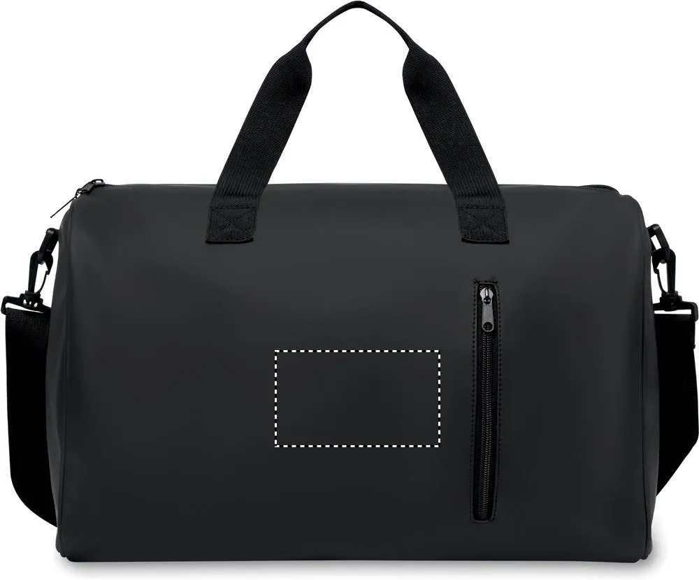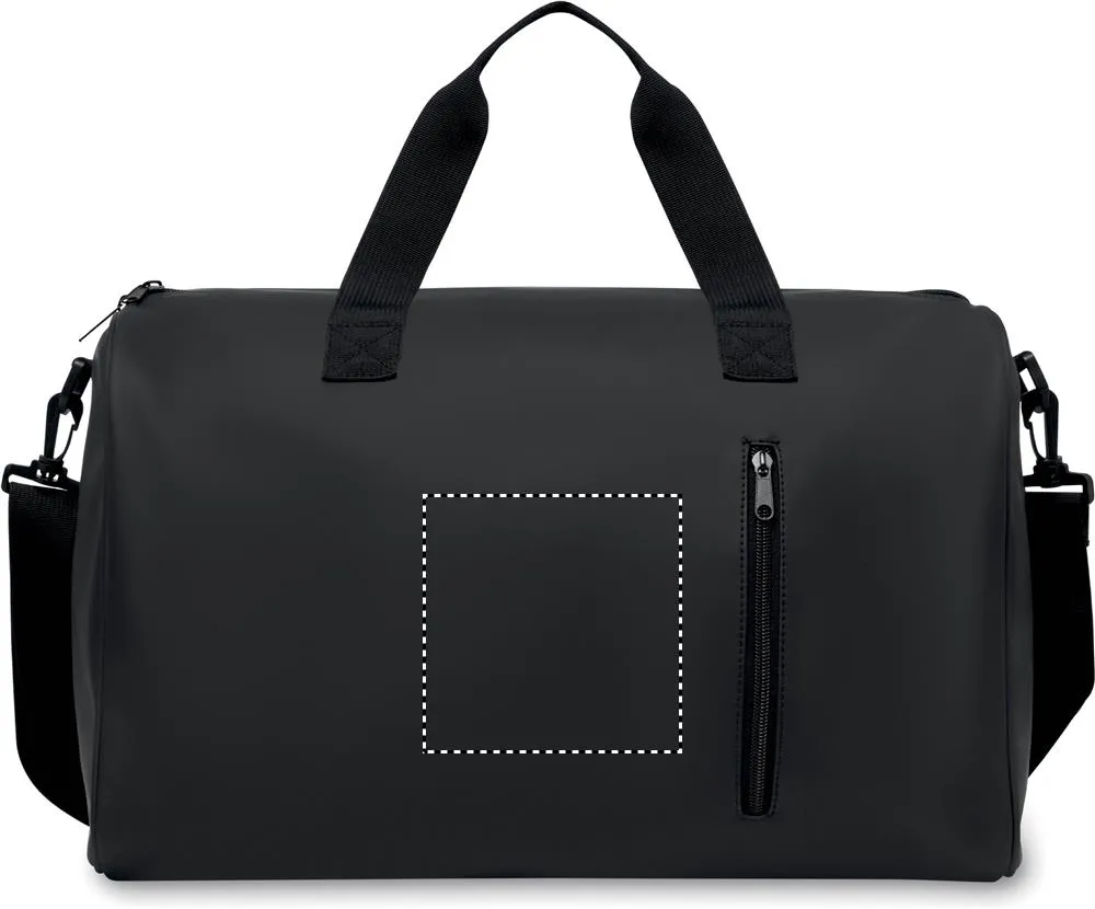 Saco de viagem em PU macio com reforço de espuma no fundo. Um compartimento principal, bolso frontal com fecho de correr. forro em poliéster 210D RPET. 2 pegas e uma alça de ombro ajustável e amovívelSaco de viagem em PU macio