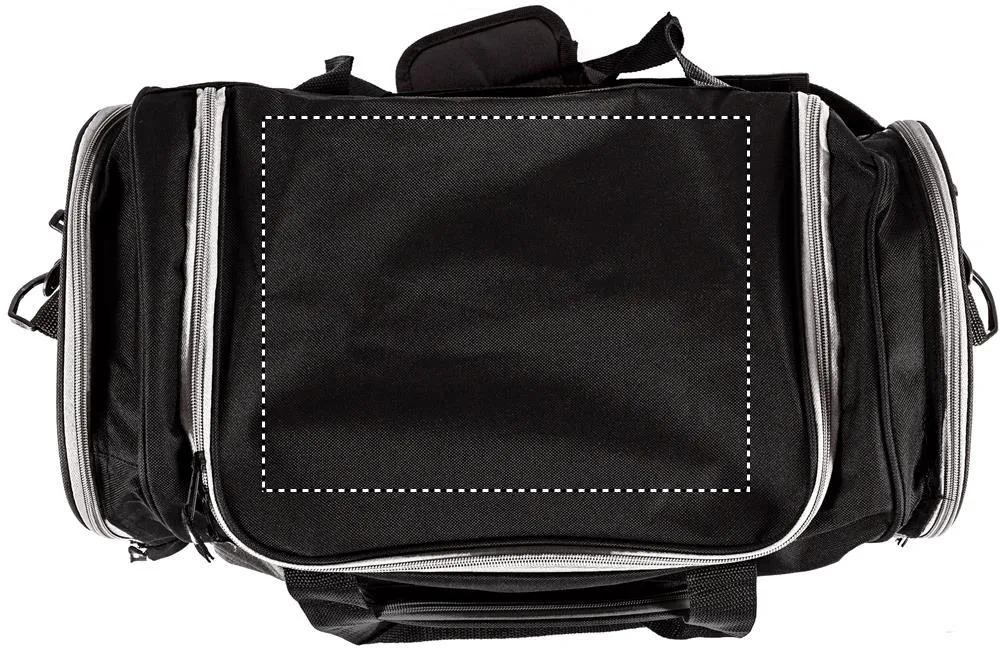 Bolsa de desporto em poliéster 600D com dois compartimentos laterais com fecho e bolso frontal com saída de auriculares. Inclui alça extraível e ajustável.Bolsa de desporto em 600D