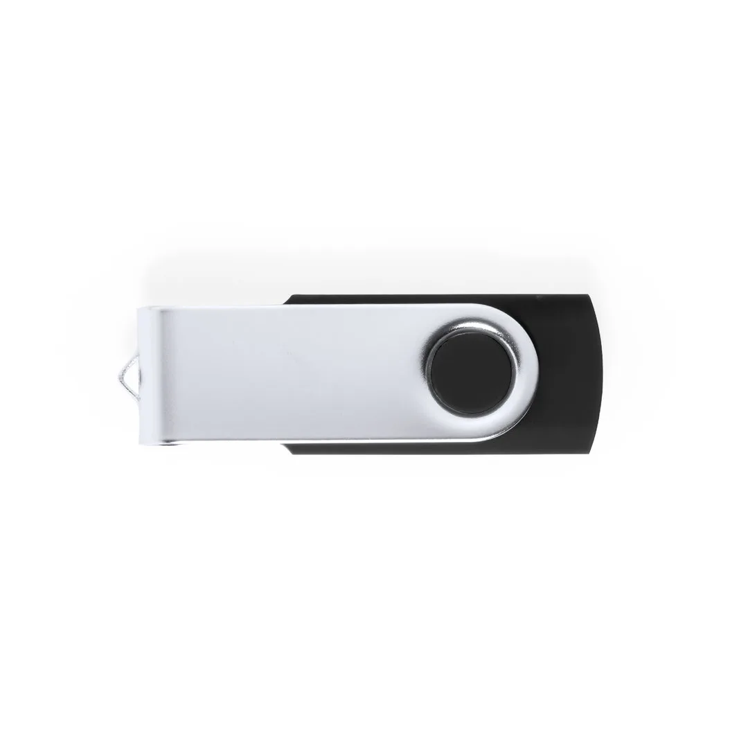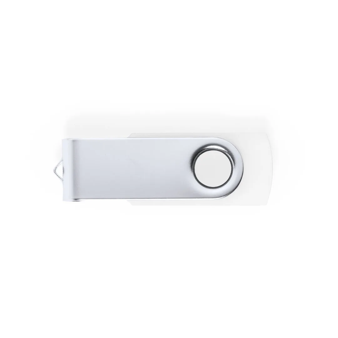 Memória USB de 8GB de capacidade. Com mecanismo giratório, corpo de acabamento suave em ABS e clip metálico. Disponível numa variada gama de cores e apresentada em caixa individual prateada com janela.