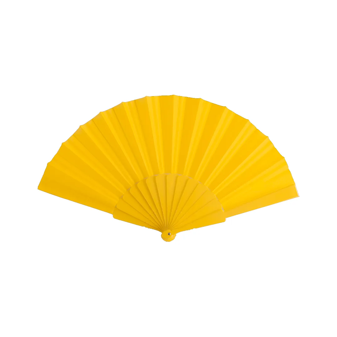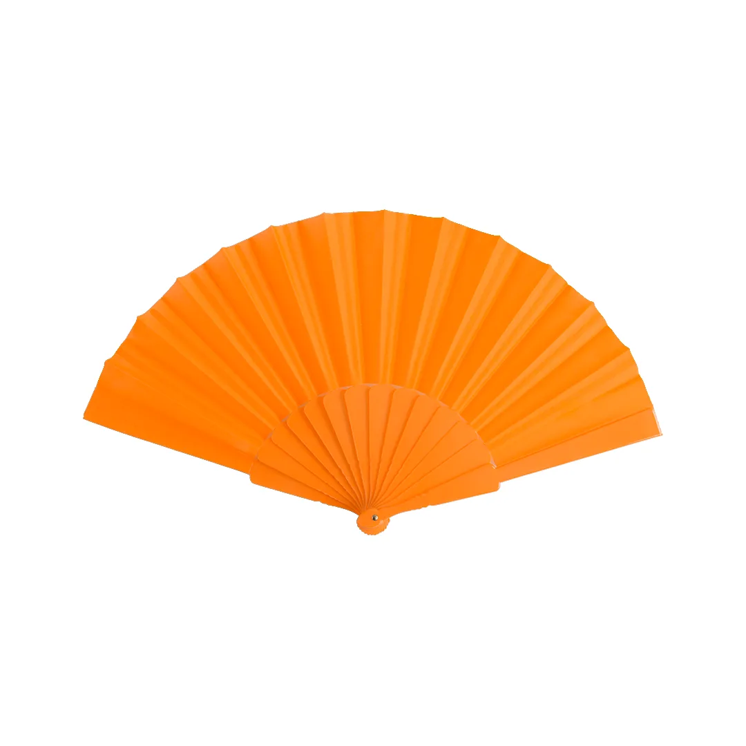 Leque confecionado num resistente plástico e tecido de poliéster. Varas e tecido disponíveis numa variada gama de cores vivas. Apresentado numa caixa individual com janela.PP/ Poliéster