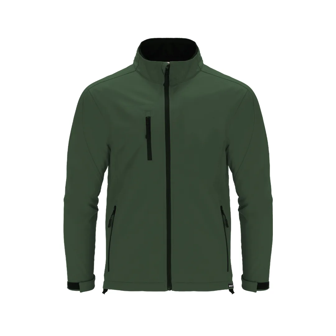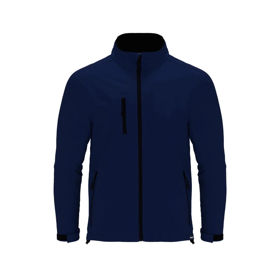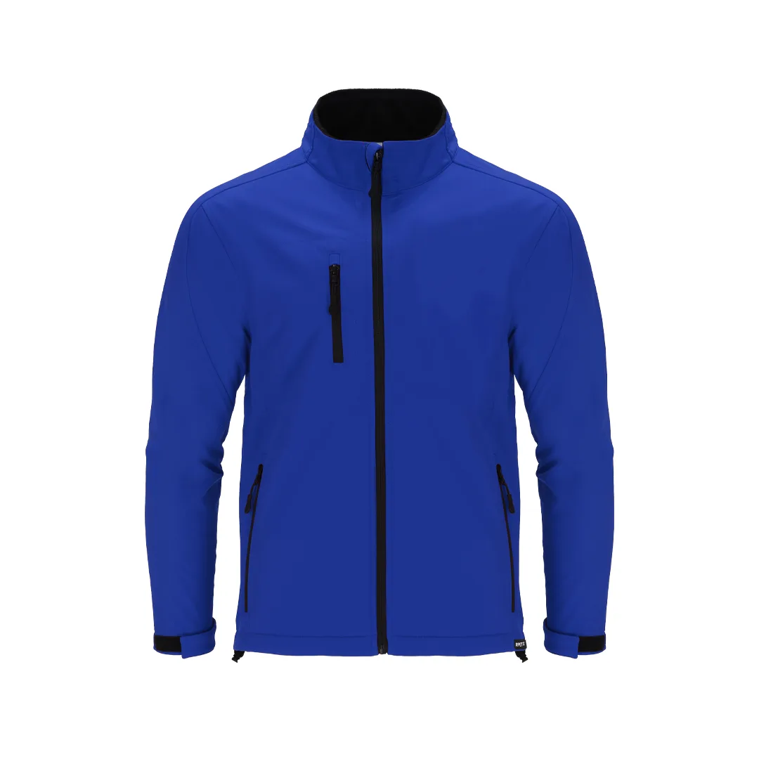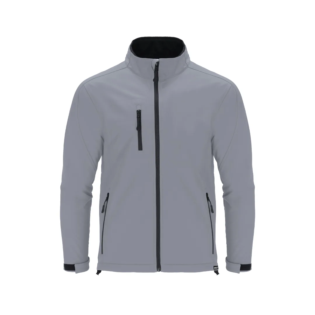 Jaqueta RPET Soft em 3 camadas, 340 g/m². Com membrana de 8000 mm, impermeável e respirável. Exterior em Soft Shell e interior em microfleece polar preto. Com bolso externo no peito direito e dois bolsos laterais com zíperes. Com fecho central de zíper e zíperes invertidos nos bolsos, incluindo puxadores pretos com cordão. Mangas raglan com sistema de fixação por velcro no punho em preto. Protetor de queixo combinando e cintura ajustável, com banda elástica e stopper. Etiqueta RPET na barra da peça.Tripla Camada. Exterior: Soft Shell, 94% Poliéster RPET/ 6% Elastano. Interior: 100% Poliéster Micropolar RPET. 340 g/ m2Resistente ao Vento e à Água