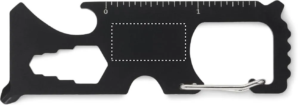 Multi-ferramenta de bolso em aço inoxidável. 8 funções. Inclui: serra de dentes, corta-fios, chave inglesa, chave de fendas Phillips, chave de fendas plana, escala de medição, abre-garrafas e porta-chaves.Multi-ferramenta 8 funções