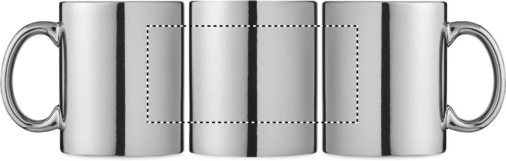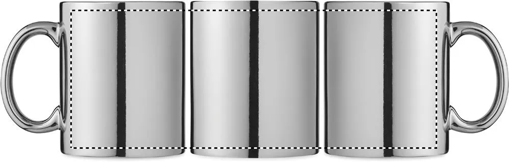 Caneca de cerâmica cilíndrica clássica com acabamento metálico. Capacidade: 300 ml.Caneca metálica 300 ml