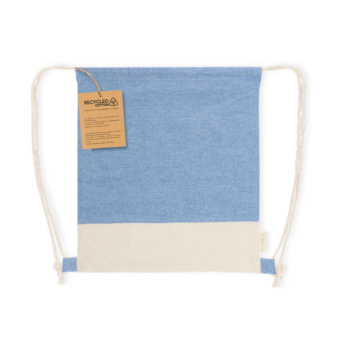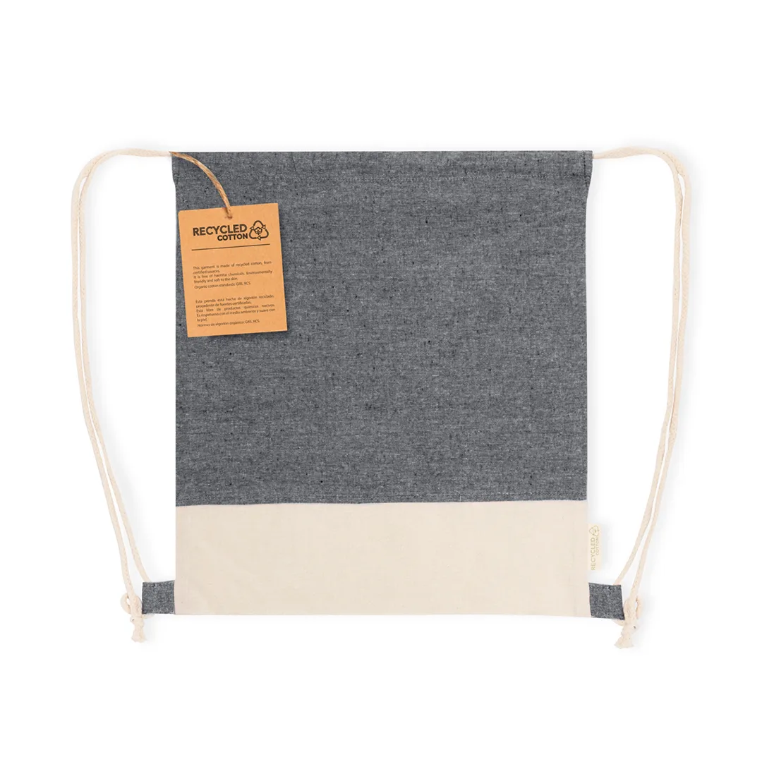 Saco mochila confeccionado em material algodão reciclado de 120 g/m2. Os cordões de fecho automático também são fabricados em algodão com argolas de tecido. A base apresenta uma cor natural a condizer com os cordões, com o logotipo eco visível na etiqueta lateral. Disponível numa variada gama de cores nature. Resistência até 6kg de peso.100% Algodão Reciclado 120 g/ m2