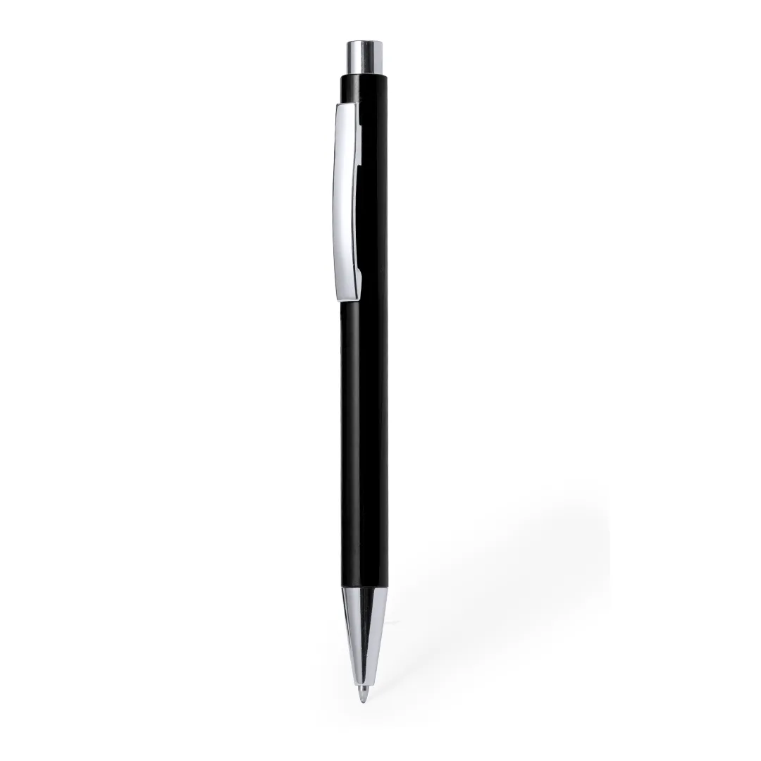 Esferográfica de mecanismo pulsador em resistente ABS. Fabricada com uma elegante combinação de corpo em diversas e chamativas cores. Esta esferográfica conta com um botão superior, clip e ponta de acabamento cromado. Tinta azul.