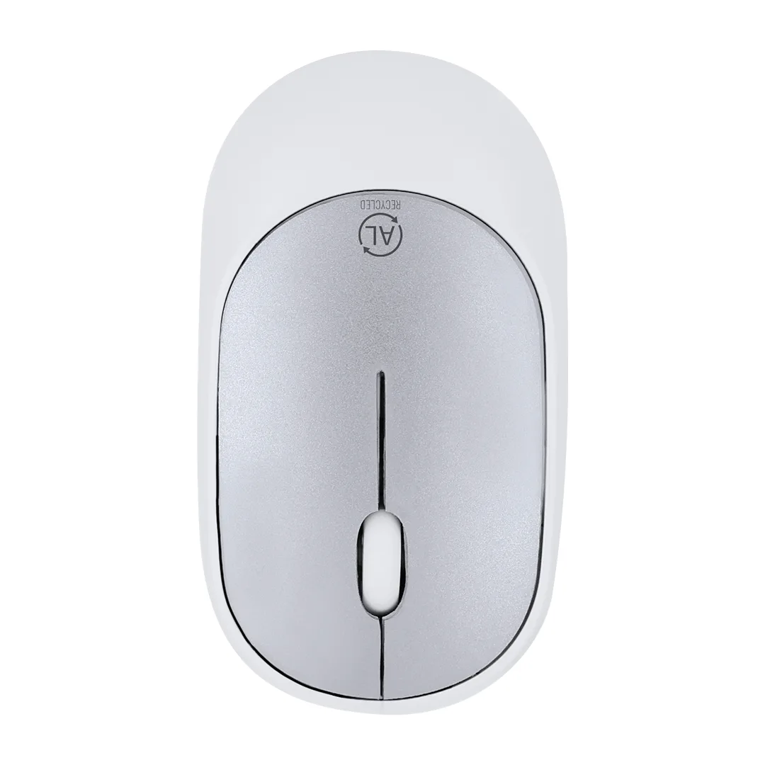 Mouse óptico sem fio feito de RABS durável (ABS reciclado), com placa superior de alumínio reciclado. Design ergonômico e conexão sem fio (conector USB incluso). Com logotipo de alumínio reciclado. Alimentação por bateria (1xAA não incluída).O RABS é um plástico altamente reciclável e resistente, com uma variedade de aplicações que o tornam uma solução ecológica. Certificação RCS garantindo sua origem reciclada.O alumínio reciclado é um material com possibilidades de reciclagem quase infinitas, sem perder suas propriedades originais e consumindo menos energia no processo.Certificação GRS (Global Recycled Standard) garantindo a origem reciclada do material usado para fabricar o produto.ABS Reciclado/ Alumínio RecicladoSem Fios. Ótico. 1 Pilha AA Não Incluída