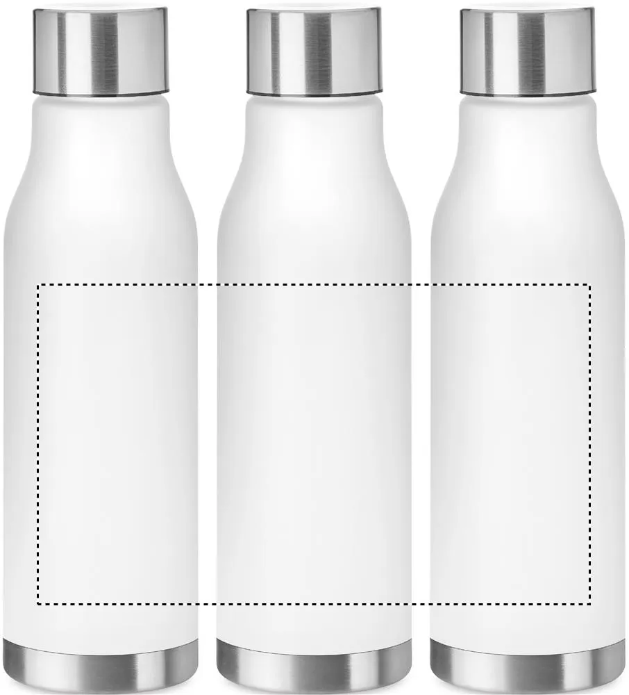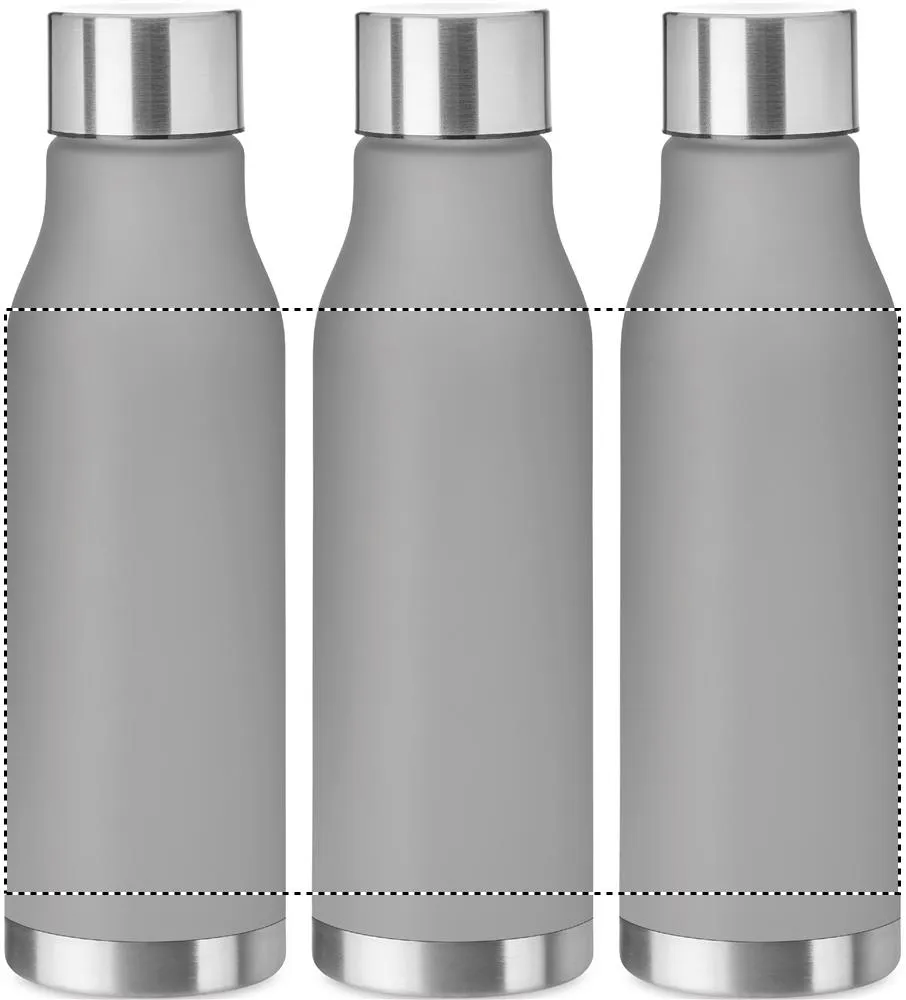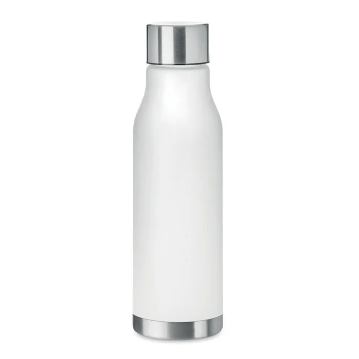 Garrafa translúcida de RPET com textura suave e tampa de aço inoxidável com interior de RPET e anel de silicone. Livre de BPA. Anti-vazamento. Capacidade: 600 ml. Não apto para bebidas carbonatadas.Garrafa RPET 600 ml