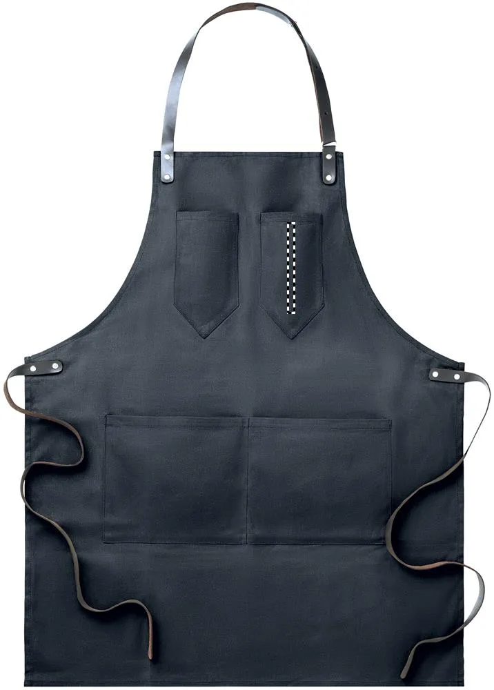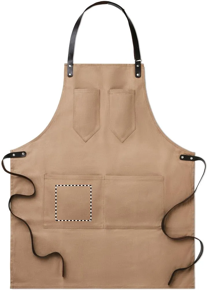 Avental em canvas com detalhes em couro, fita ajustável com 2 bolsos pequenos, e 1 bolso inferior grande.Avental em canvas algodão