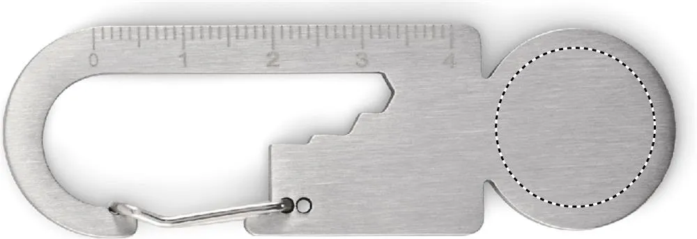 Ficha de carrinho com porta-chaves em aço inoxidável reciclado (90% aço inoxidável reciclado e 10% aço inoxidável) com ferramenta multifunções incluindo abre-garrafas, régua e chave hexagonal de 5,5 mm, 7 mm e 8 mmFicha multifunções