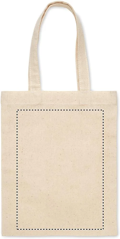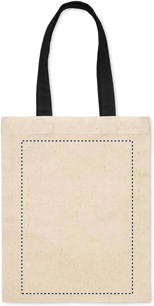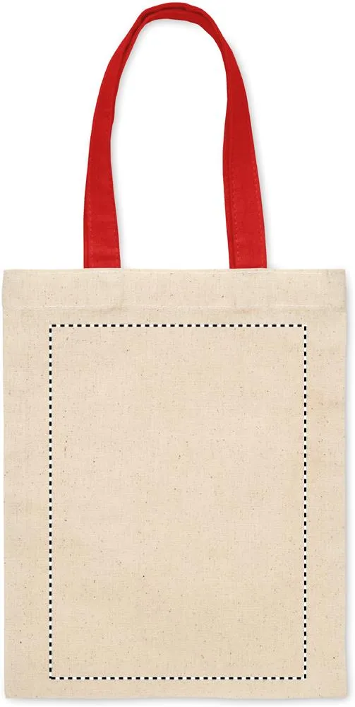 Pequeno saco de oferta em algodão com pegas curtas. 140 gr/m². Este produto tem a certificação OEKO-TEX® STANDARD 100.Saco algodão pegas curtas 140g