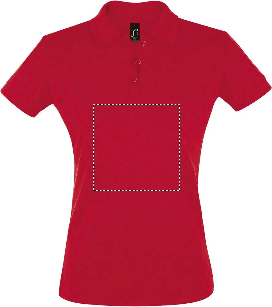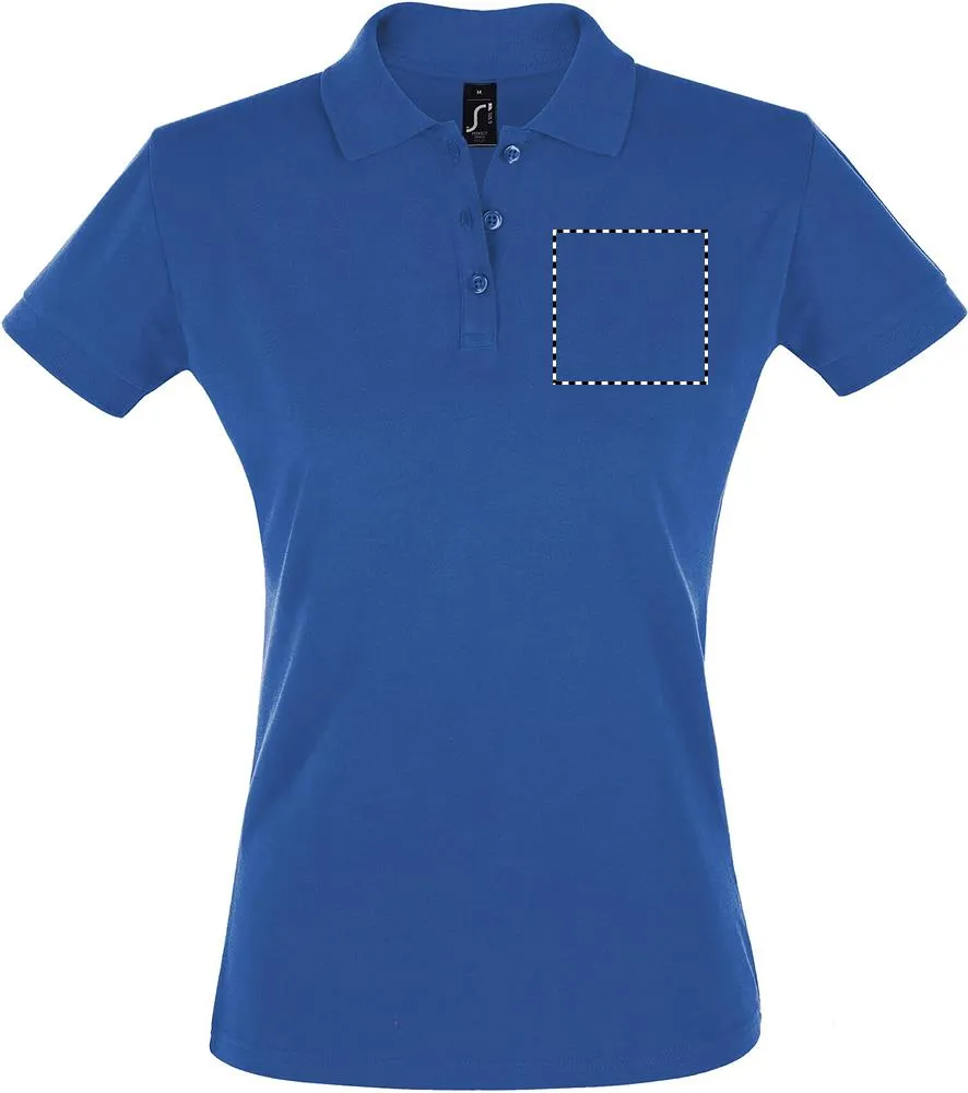 SOL'S PERFECT Pólo SENHORA 180g/m², piqué 180, 100% algodão penteado ringpun, canelado 1x1 na gola e parte inferior das mangas, fita de reforço na gola, mangas curtas, 2 botões perolados na mesma cor de plaquetas, botão suplente inserido no interior, costuras laterais.PERFECT POLO SENHORA 180g