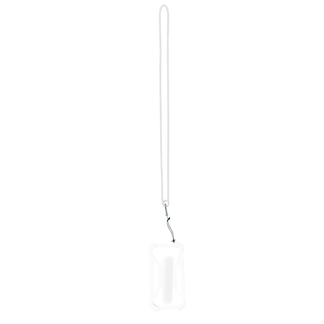 Prática lanyard em silicone resistente. Inclui acessório para telemóvel a condizer, reforçada nos cantos e com suporte desdobrável na parte traseira. Com mosquetão metálico giratório e disponível numa vasta gama de cores.Silicone