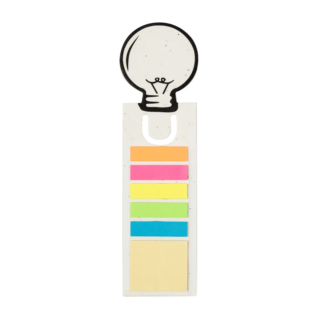 Ref: BEC74902MOOriginal marca páginas fabricado em papel com sementes, com um distinto design de lâmpada na parte superior. Além disso, conta com notas adesivas em diversas formas e cores: 15 notas adesivas de 4x4,5 cm em tom amarelo e 75 mini notas de 1,2x4,5 cm em cinco cores diferentes. O papel inclui sementes de petúnia, convertendo-o em papel plantável no final da sua vida útil. Inclui instruções de plantação na contra capa e apresenta-se numa bolsa individual de papel reciclado.