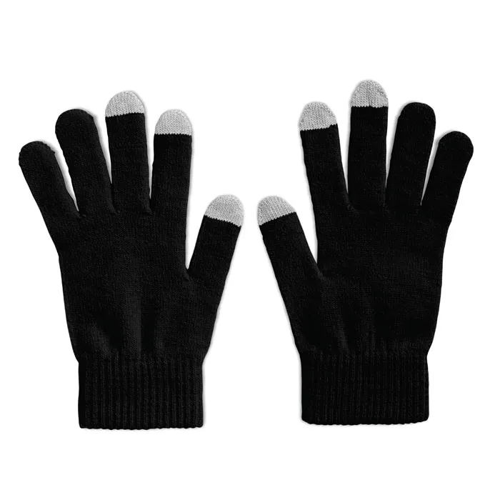 Luvas tácteis para smart em acrílico. As 3 extremidades tácteis dos dedos são compostas de 0,5% em fibra de aço inoxidável, 89,5% em acrílico, 10% em spandex. O tamanho das luvas pode variar devido ao spandex adicionado.Luvas para ecrãn táctil