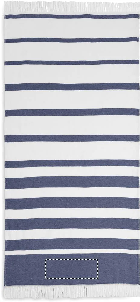 Toalha de hammam ou de praia em tecido reciclado. 70% algodão reciclado e 30% poliéster reciclado poliéster SEAQUAL® YARN. 300 gr/m². 70x140 cm. A SEAQUAL INITIATIVE trabalha com na limpeza dos oceanos em todo o mundo para valorizar os resíduos que recuperam. Fabricado na UE.Toalha banho turco 70x140 cm