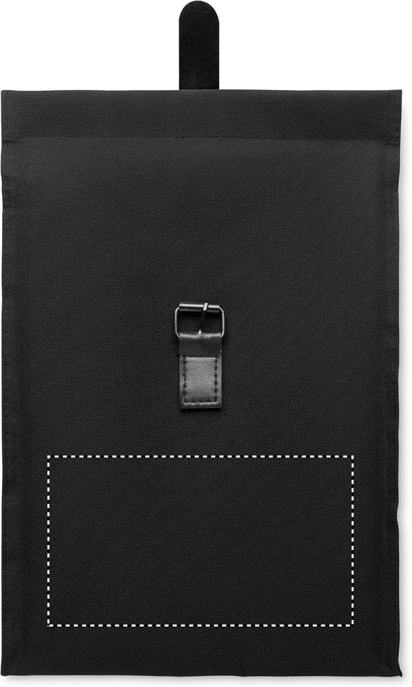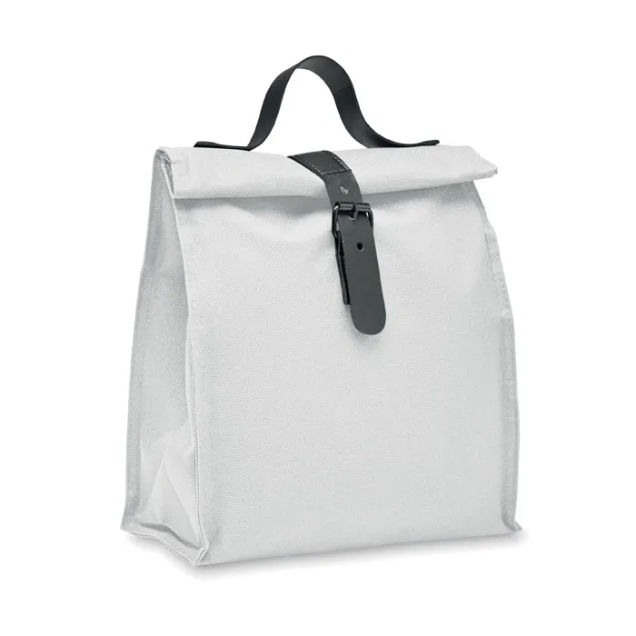 Saco térmico com tampa de enrolar em poliéster 600D RPET com pega e fecho em PU. Isolamento: espuma PE de 3 mm com PEVA.Saco térmico 600D RPET