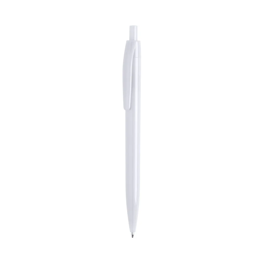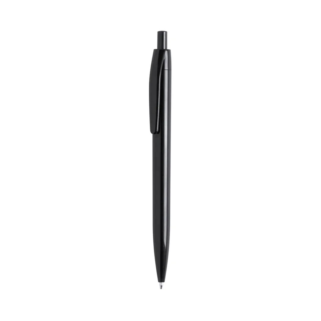 Esferográfica de mecanismo pulsador, de design monocromático em várias de cores vivas e brilhantes. Tinta azul
