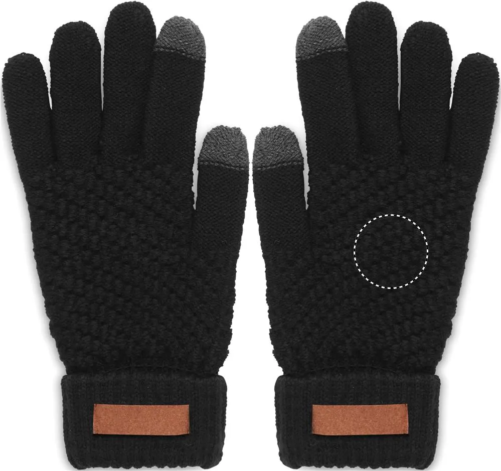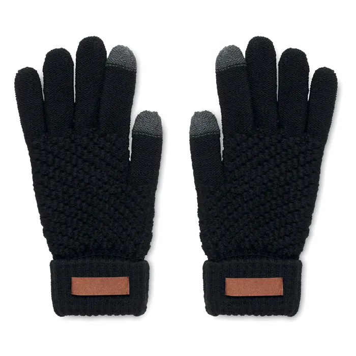 Luvas tácteis para smartphone em RPET com etiqueta para a área de impressão.Luvas tácteis de tapete