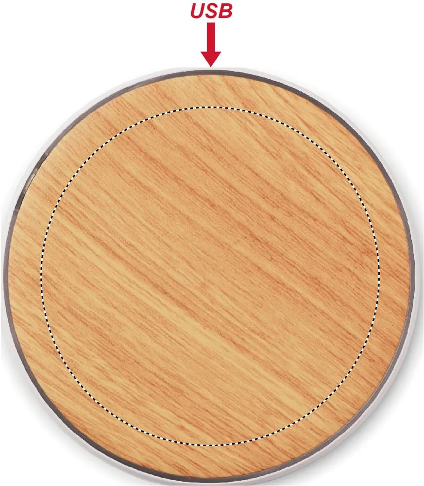 Carregador wireless em ABS com acabamento em bambu. Conecte ao PC, coloque o smartphone sobre a base, e deixa-o carregar. Output: DC5V/1A (5W). Compatível com Android mais recentes, iPhone® 8, X ou superior. O bambu é um material natural, a cor do item, o tamanho e a impressão podem variar.Carregador sem fio redondo