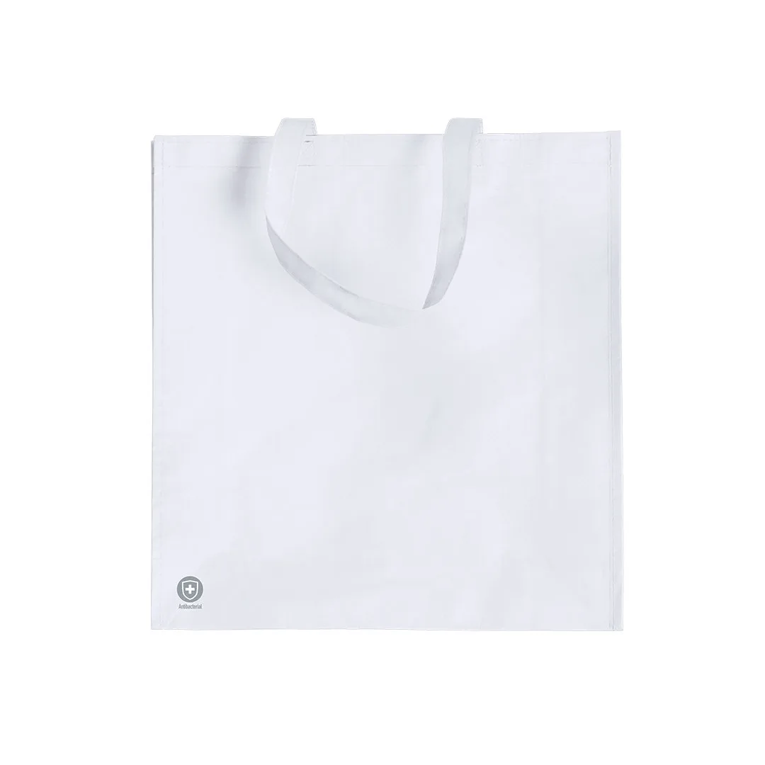 Saco antibacteriano em PP-woven de alta resistência e acabamento mate. Disponível numa variada gama de cores, com alças médias reforçadas com 50 cm de comprimento. Acabamento cosido, com foles e cantos reforçados.Os produtos com tratamentos antibacterianos são capazes de reduzir drásticamente as cargas bacterianas presentes nas superfícies dos materiais, graças à incorporação de agentes microbianos permanentes estáticos, com alta eficácia para inibir e prevenir a contaminação bacteriana.Artigo de acordo com a ISO 22196, que determina a atividade antibacteriana em materiais plásticos e superfícies não porosas, o que permite conhecer a eficácia da inibição microbiana que têm os aditivos sobre os objetos tratados mediante uma avaliação quantitativa.Non-Woven Laminado