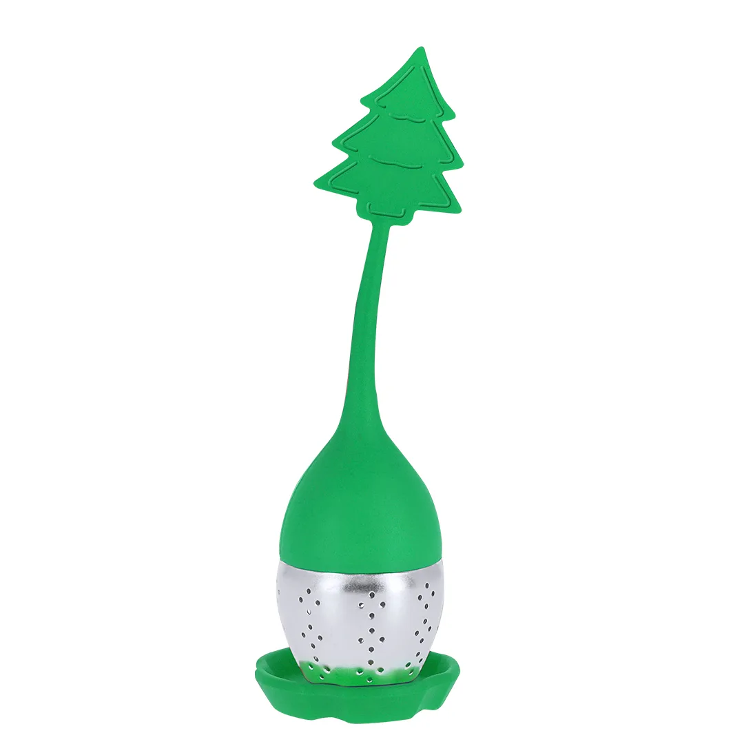 Infusor de chá com design natalício, fabricado em silicone e aço inoxidável. Inclui base em silicone, ideal para apoiar o infusor após a utilização, evitando pingos e mantendo a superfície limpa.Aço Inox/ Silicone