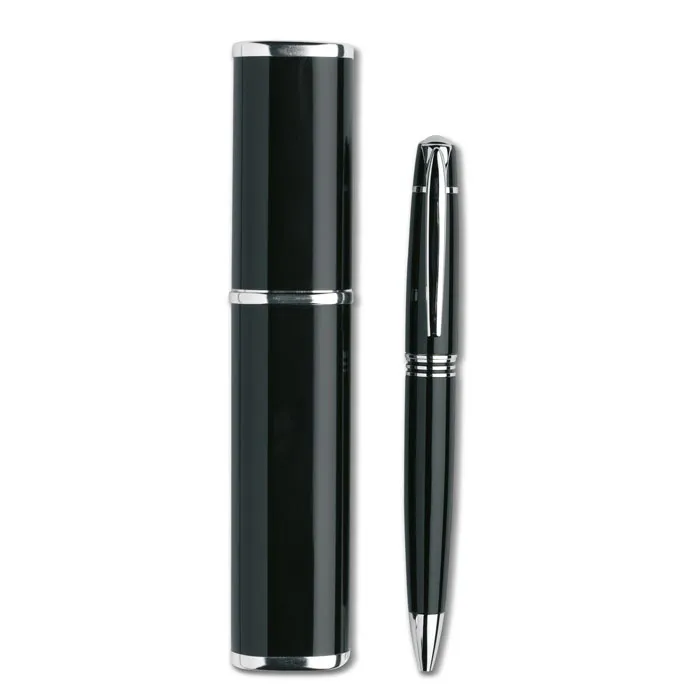 Esferográfica giratória de metal em caixa de presente de alumínio. Com escrita preta.Esferográfica Oregon