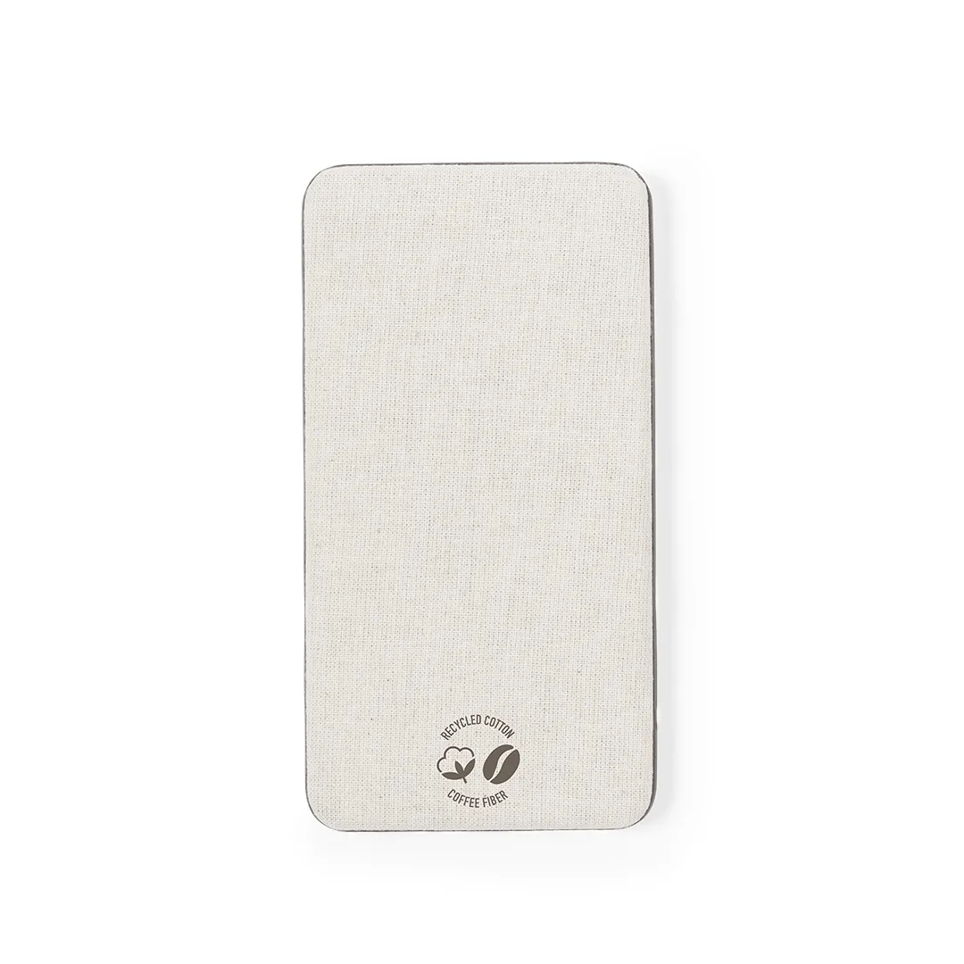 Power bank de 5.000 mAh, fabricado em fibra de café e algodão reciclado. Com 2 saidas USB, entrada micro USB e conexão dual de entrada e saída Tipo C. Cabo de carga Tipo C incluído, e presentado em caixa individual de design kraft. Com distintivos de fibra de café e algodão reciclado. Disponivel manual de instruções em espanhol e inglês.A fibra de café é uma solução circular que se obtém da utilização de resíduos produzidos na obtenção do café. Uma alternativa sustentável que favorece a redução do uso de plásticos, poupando energia no seu processo de fabricação e contribuindo para o cuidado do meio ambiente. Entrada/Saída USB C: 5V DC 2.4VSaída USB: 5V DC 2.4AEntrada Micro USB: 5V DC 2.1A As capacidades apresentadas em todos os nossos power banks são reais, incorporando todos eles baterias de grau A e não recicladas, com uma vida útil de pelo menos 500 ciclos de carga e segundo normativa CE.Disponível certificação GRS (Global Recycled Standard / Standard de Reciclagem Global), que garante a origem reciclada do material usado para fabricar o produto.Além disso, são fabricados conforme as normas RoHS e em cumprimento com os seguintes requisitos de segurança:Sistema de proteção contra sobrecarga do power bank.Sistema de proteção contra descarga completa que proporciona uma maior durabilidade do power bank.Sistema de bloqueio para evitar curto-circuitos.Sistema de transferência de carga constante, de acordo com a capacidade do dispositivo de destino.Fibra de Café/ ABS/ Algodão Reciclado5000 mAh. 2 Saídas USB e 1 Tipo C. Entrada Micro USB e Tipo C