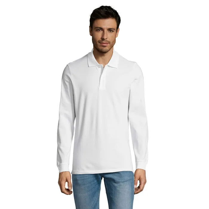 SOL'S PERFECT LSL Polo SENHOR 180g/m², piqué 180, 100% algodão penteado, gola e punhos canelados 1x1, manga comprida, carcela de 2 botões, debrum na gola.PERFECT MEN LSL POLO 180g
