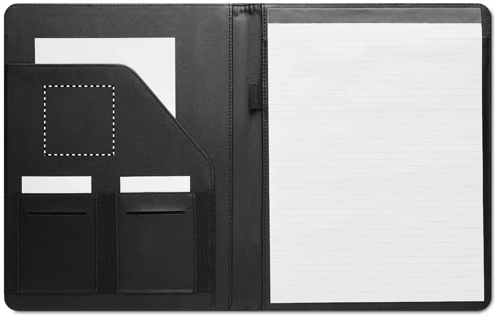 Portfólio de tamanho A4 em dois tons 300D RPET. Contém compartimentos interiores esuporte caneta. Inclui um bloco de notas forrado com 20 folhas. O bambu é um material natural, a cor do item, o tamanho e a impressão podem variar.Portfólio A4 em 300D RPET