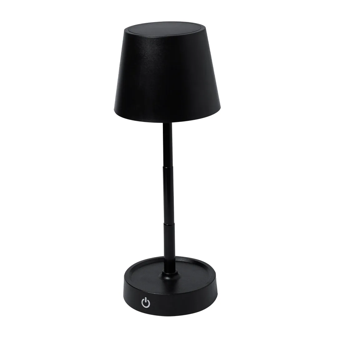 Lâmpada de design com acabamento preto fosco. Inclui sistema de regulação de intensidade de luz tátil e corpo dobrável para ajuste de altura. Equipado com bateria de 800mAh recarregável via USB Tipo C -cabo incluído- e 12 LEDs de luz quente. Com botão de ligar/desligar na parte traseira.12 Leds. Dobrável. Intensidade de Luz Regulável. Bateria 800 mAh