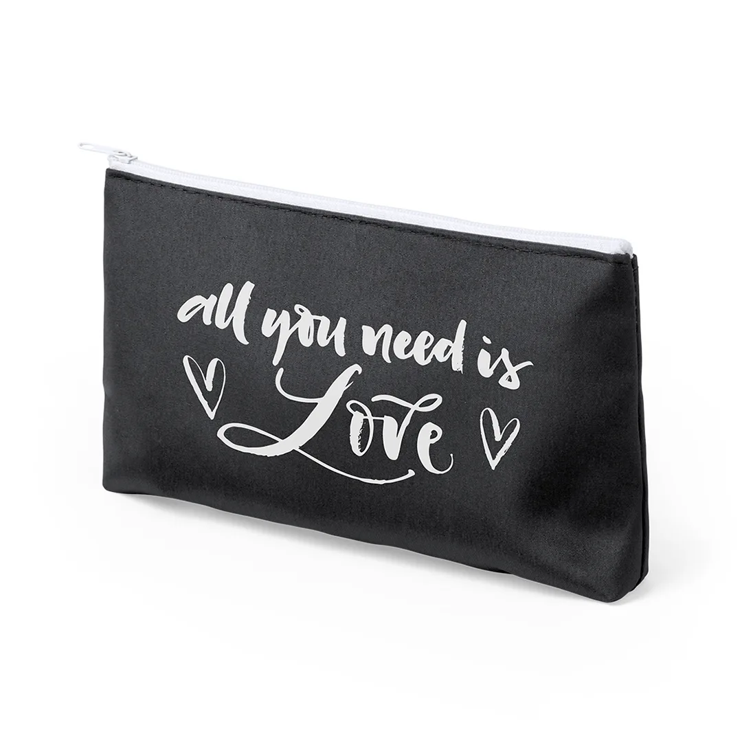 Bolsa de beleza com vários objetivos em material de microfibra 100% em tons variados e brilhantes. Com fechamento de zíper branco.