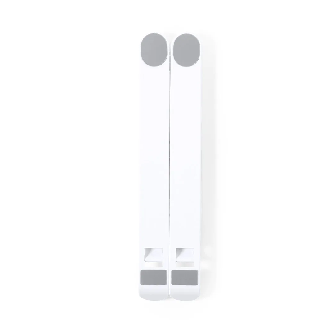 Suporte dobrável para portátil. Fabricado em resistente ABS com proteções antiderrapantes em TPR para um ajuste firme ao dispositivo. Altura regulável, com dobrado de tamanho compacto e apresentado numa bolsa de camurça com fecho de cordão e caixa de design individual.Dobrável. Altura Regulável. Bolsa Veludo