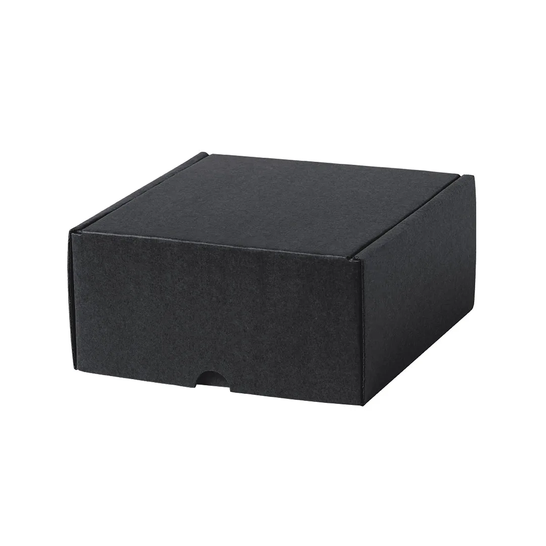 Caja de apresentação tamanho S, fabricada em papelão ondulado na cor preta. Em linha com a tendência do mercado para a sustentabilidade integral do presente, oferecendo soluções para ajudar à melhoria e conservação do nosso planeta.Cartão Canelado Reciclado