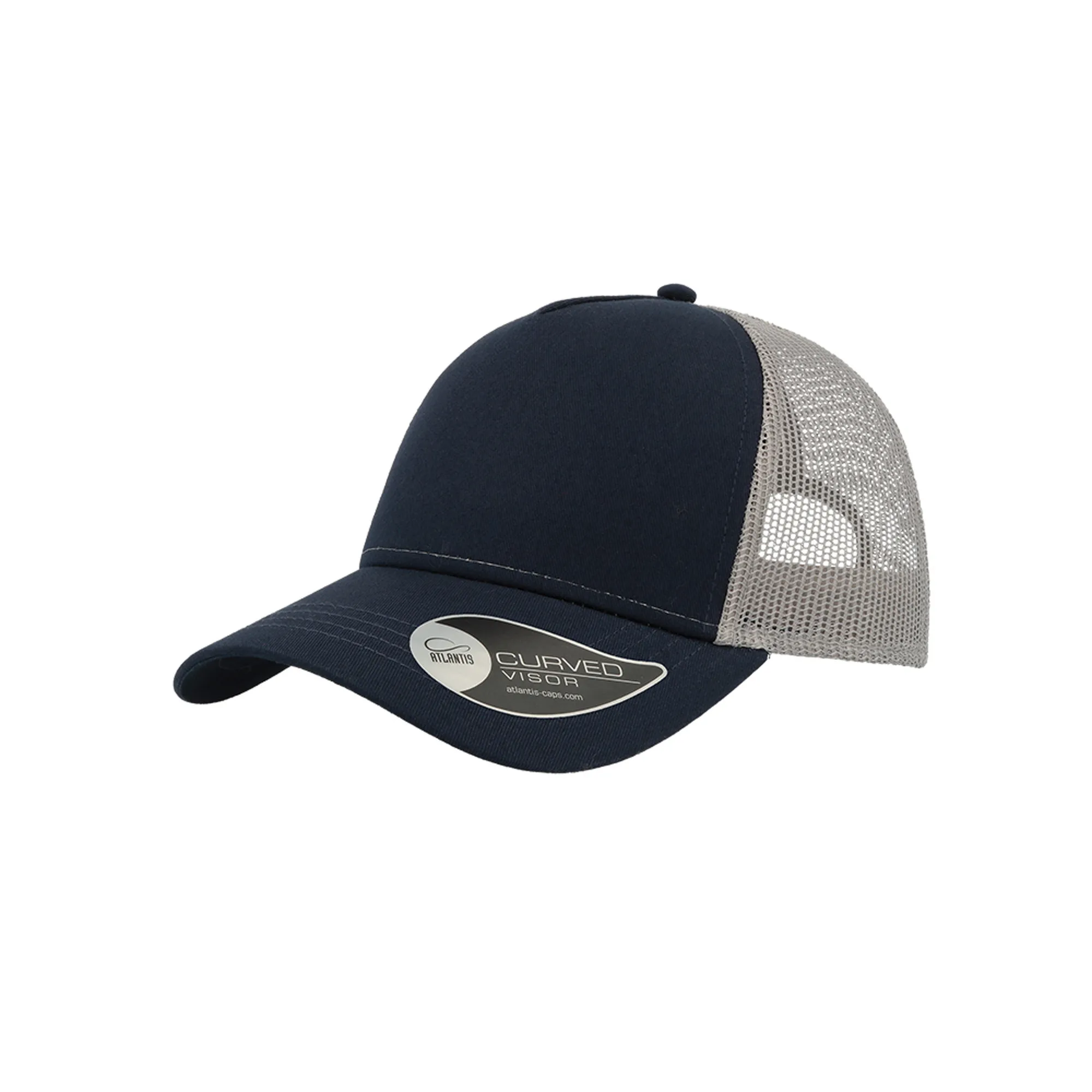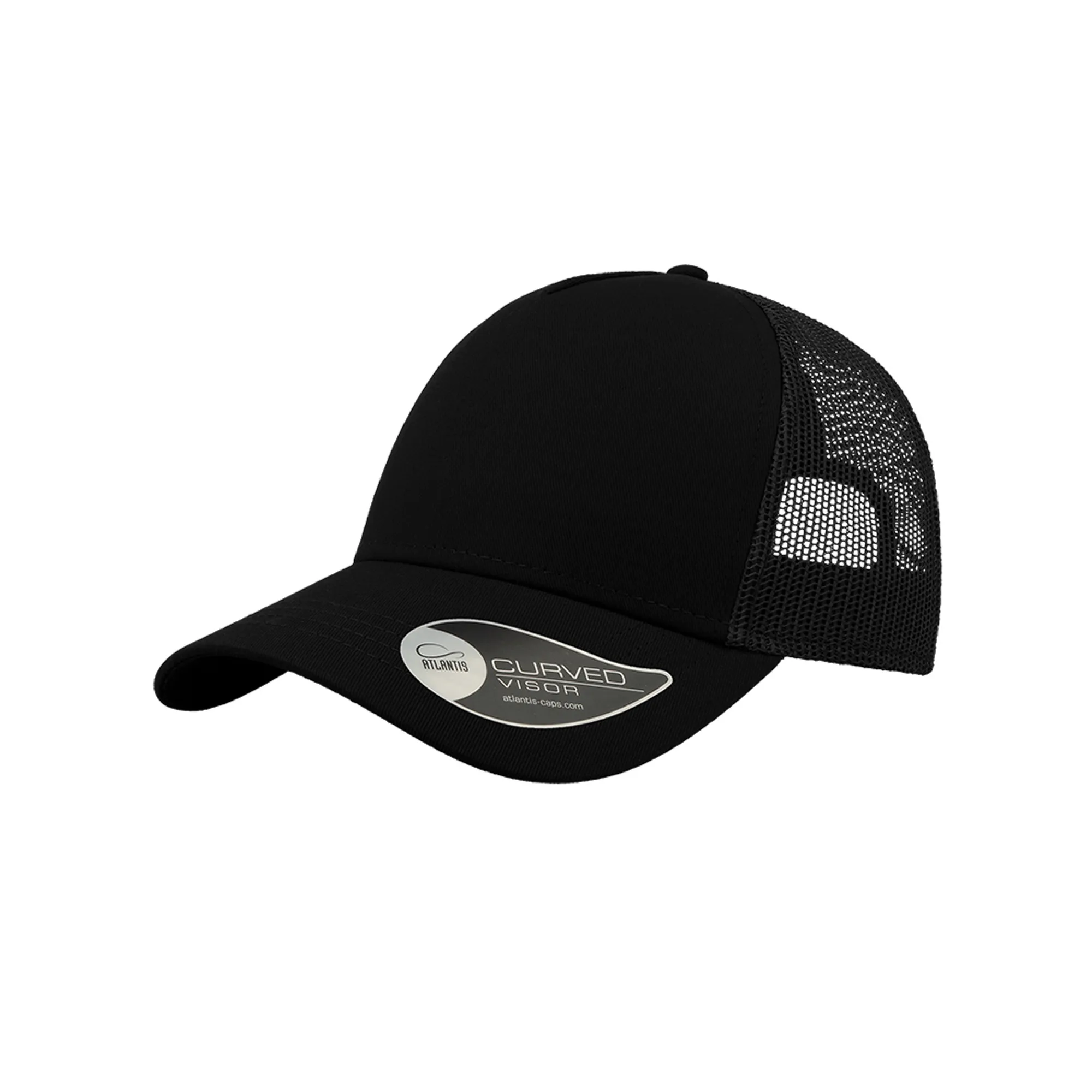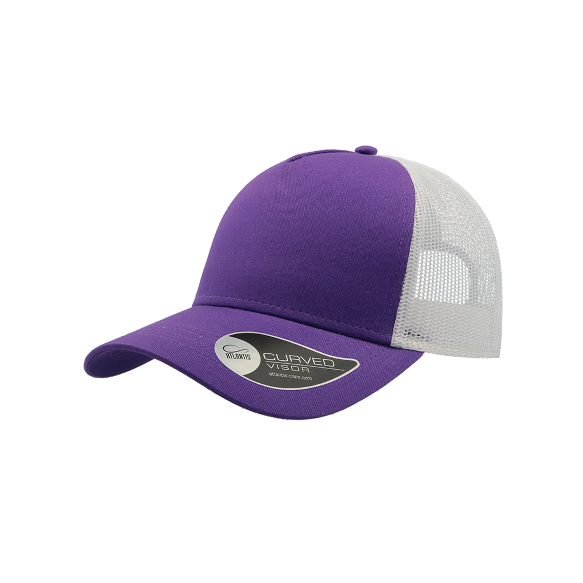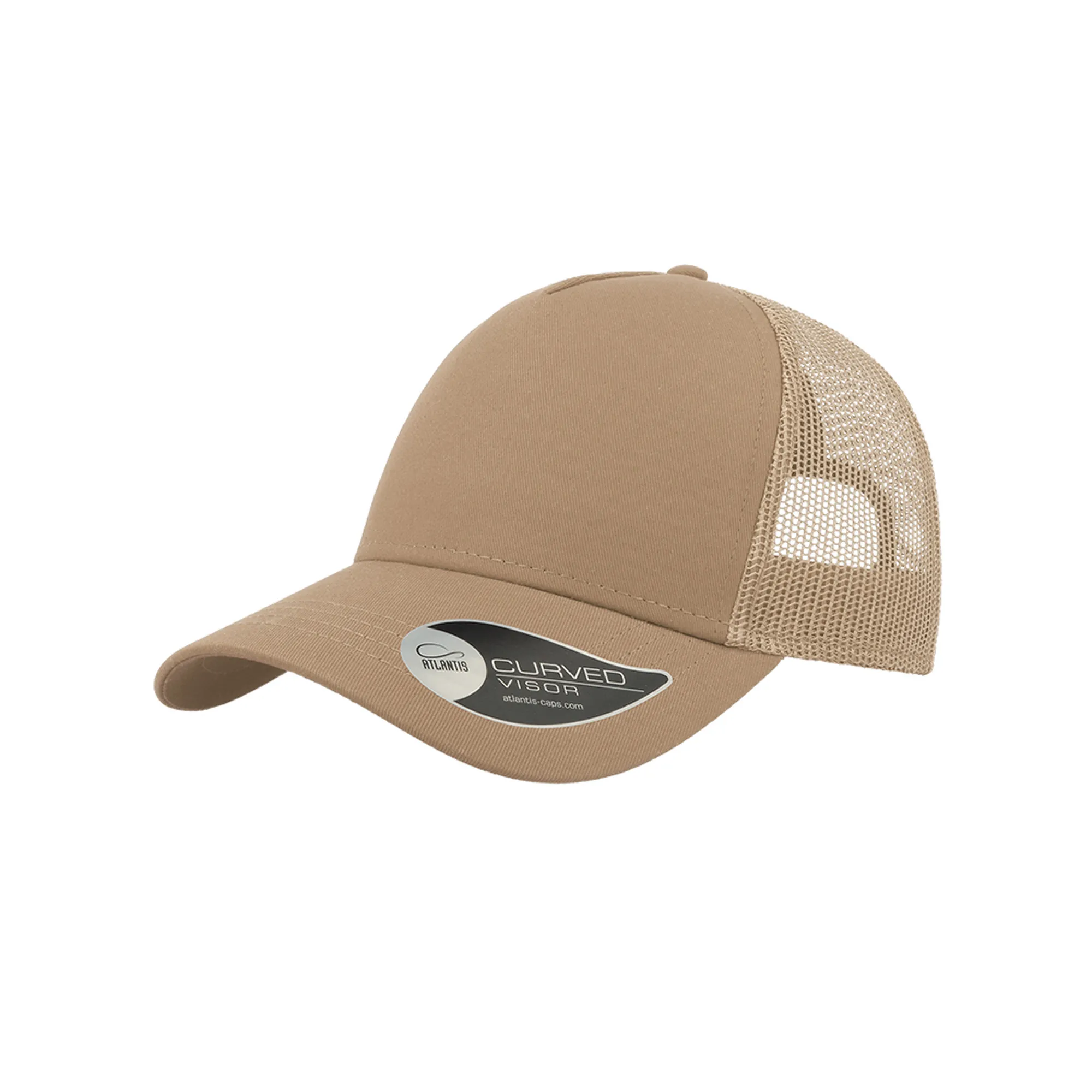 O boné Rapper com painel frontal e pala de algodão chino. Perfeito para bordados Tem 4 costuras na pala, 5 painéis, visor curvo, lateral e traseira em rede, fecho em PVC atrás. Etiqueta removível. Frente 100% algodão, traseira 100% poliéster.Boné Rapper Cotton, 100% algodão