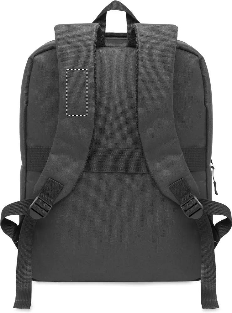 Mochila fina em 600D RPET e forro 210D. Compartimento para portátil de 15''. Inclui um bolso com fecho para tablet de 10'', 2 bolsos internos, 2 bolsos para canetas, bolso frontal com fecho. 2 bolsos laterais. Costas e alças de ombro almofadadas e macias. Manga de mala.Mochila fina para portátil 15"