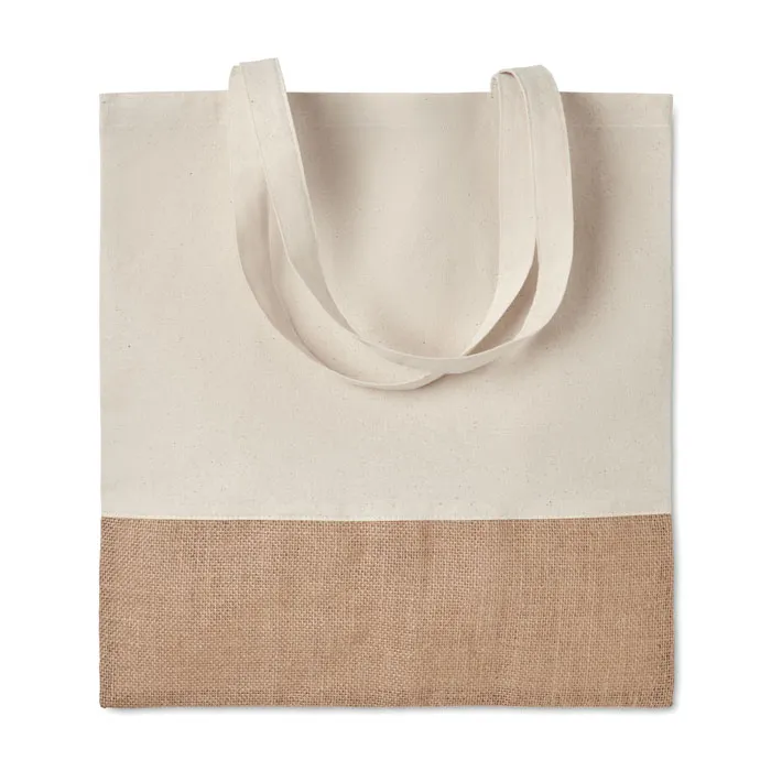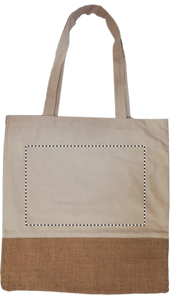 Saco de cordão sarja algodão com parte inferior em juta. Alças longas. 160 gr/m².Saco compras em jute
