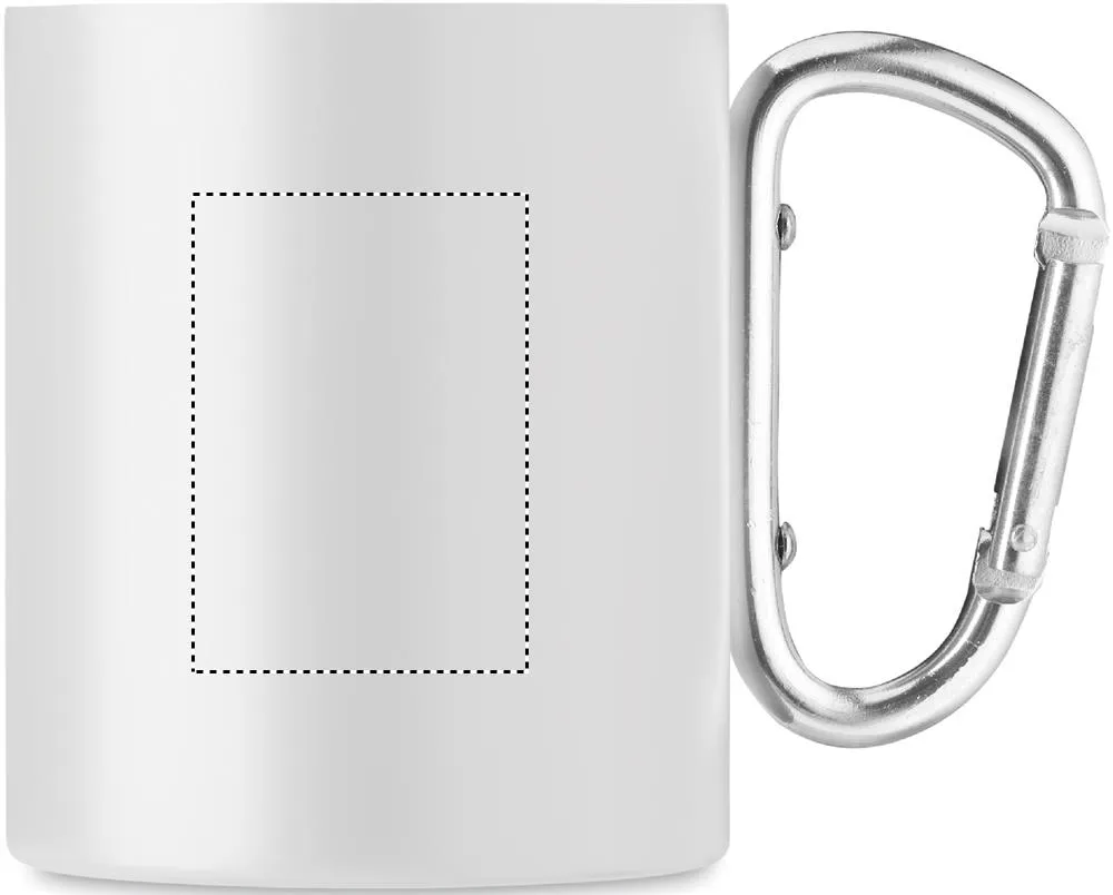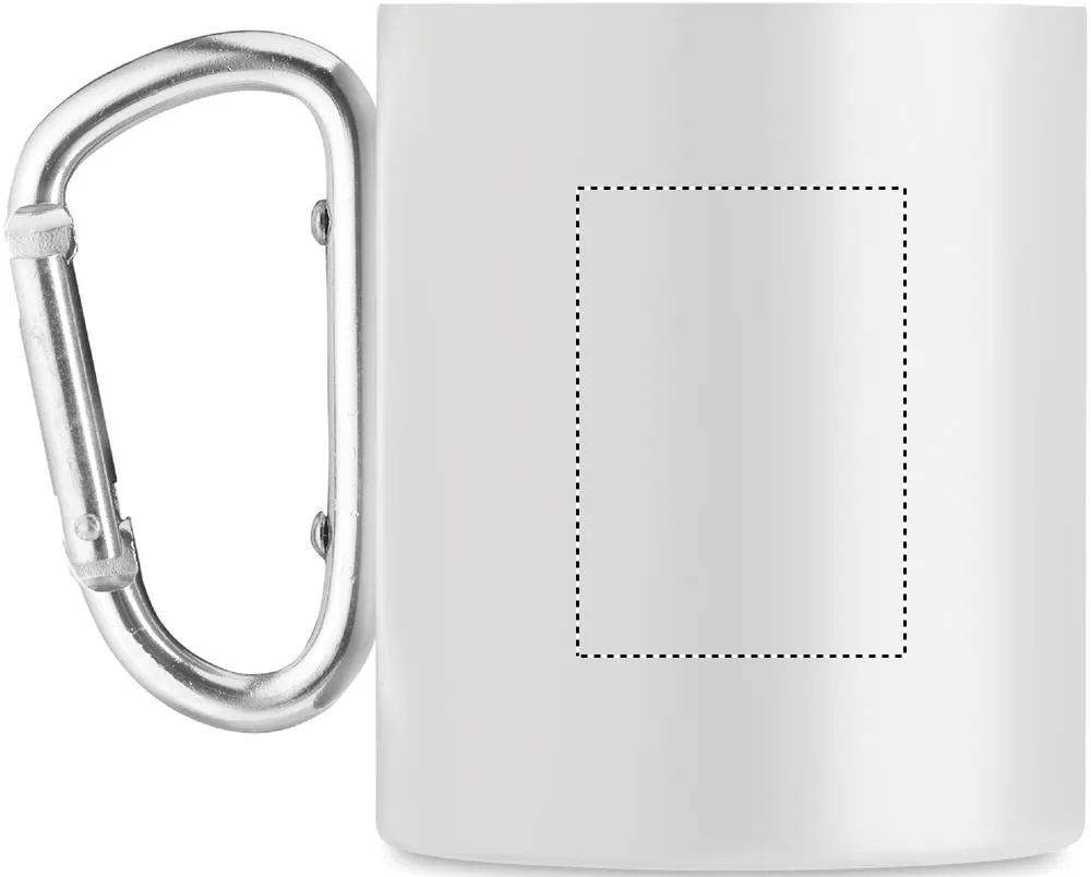 Caneca vintage de sublimação de parede dupla em aço inoxidável com asa demosquetão. Capacidade 300 ml.Caneca de metal e mosquetão