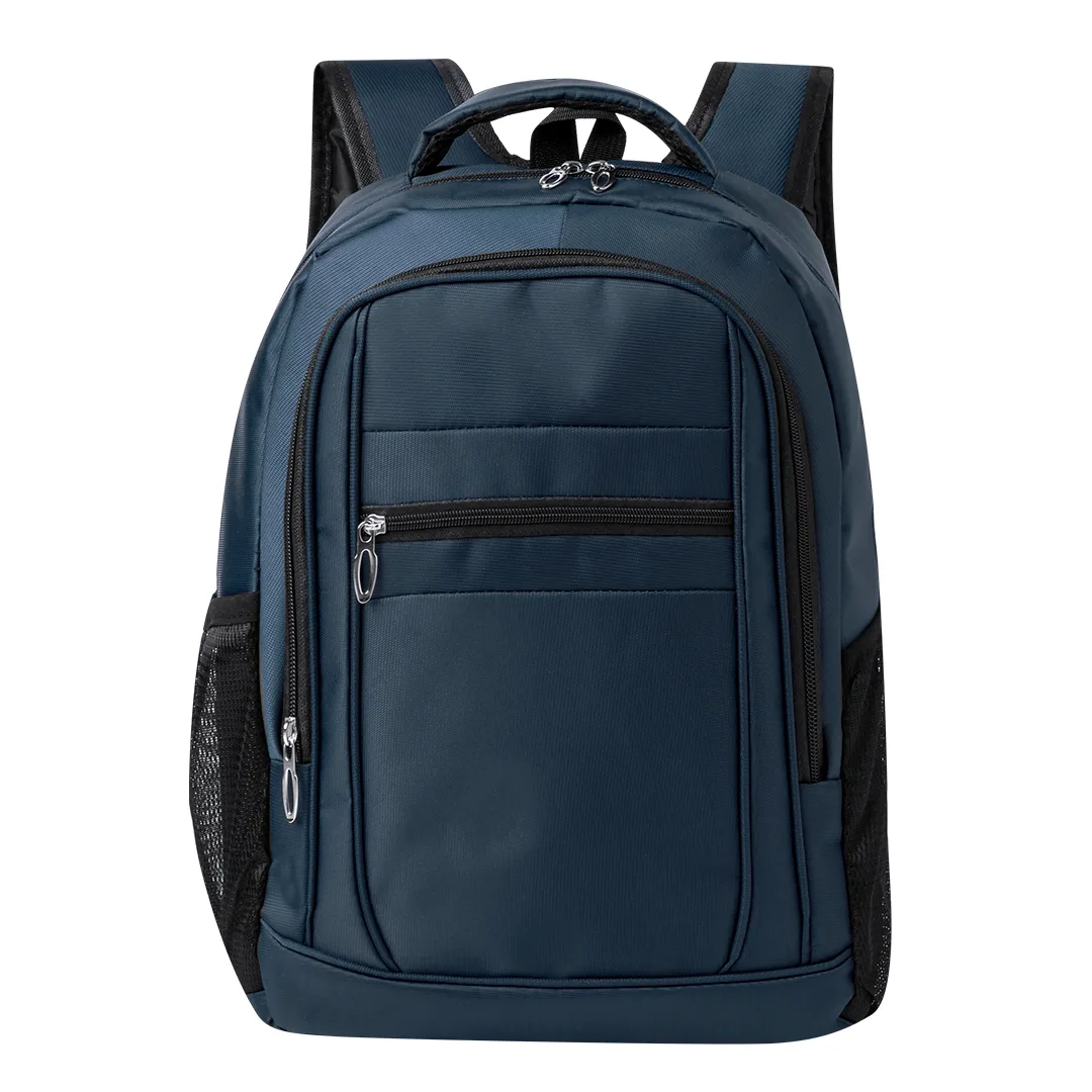 Mochila confecionada em resistente 600D Nylon. Conta com um bolso principal com fecho de correr,e duplo puxador. Interior com bolsos acolchoados destinados a tablet de até 10 polegadas e portátil de até 15 polegadas. Além disso, leva dois bolsos frontais adicionais. Tanto as costas como as alças de ombros são acolchoadas e ajustáveis, fabricadas com um tecido transpirável. Apresenta uma cómoda fita superior acolchoada e bolsos laterais de rede. Disponível em elegantes cores, com complementos em preto. Apresentada numa bolsa individual.Nylon 600DBolso Acolchoado para Portátil. Parte Traseira e Alças Acolchoadas