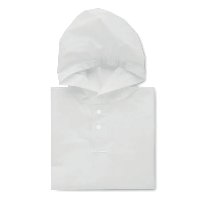 Mackintosh PEVA infantil (2-5 anos) com capuz. Fecho com botão de pressão.Capa de chuva para criança