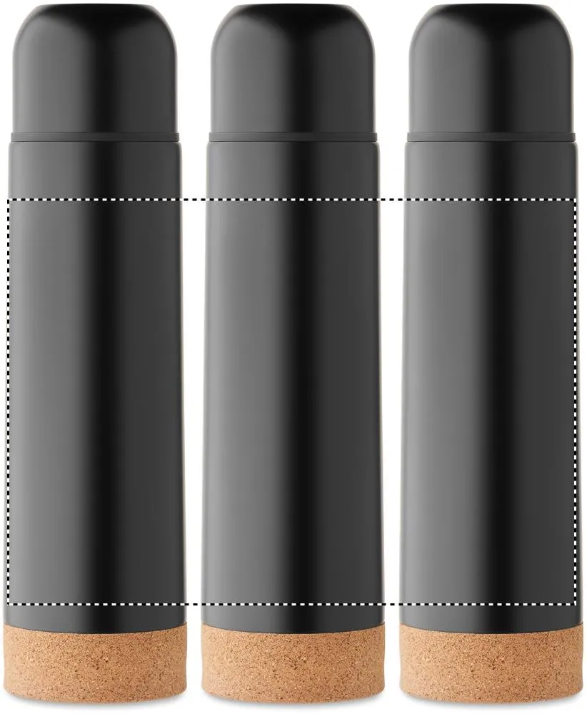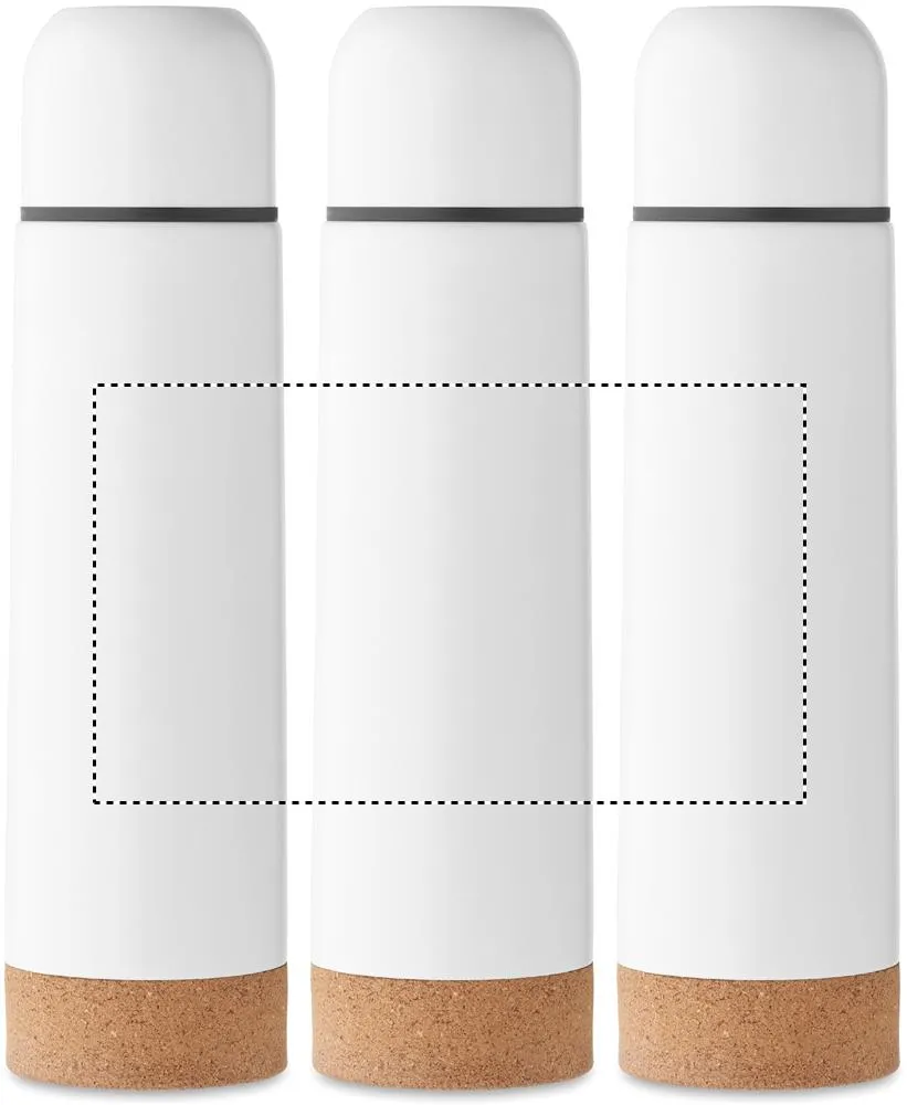 Garrafa de aço inoxidável reciclado isolada a vácuo com parede dupla e base com pormenor de cortiça. Sem fugas. Capacidade: 450 ml. (90% aço inoxidável reciclado e 10% aço inoxidável).Garrafa de parede dupla 450ml