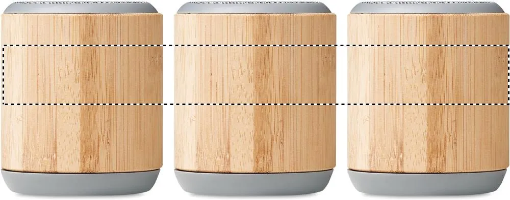 Coluna sem fios 5.3 em capa de bambu e ABS no topo com correia de PU. 1 bateria recarregável Li-Ion de 300 mAh. Dados de saída: 3W, 4 Ohm. Tempo de jogo: aproximadamente 2h. O bambu é um material natural, a cor do item, o tamanho e a impressão podem variar.Coluna de bambu sem fios 5.3