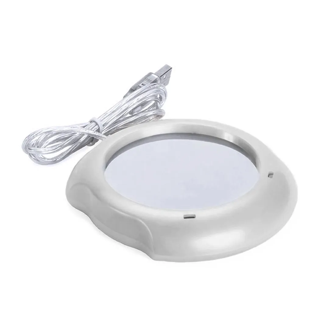 Aquecedor de canecas com conexão USB e superfície de metal, especialmente projetada para manter o calor. Elegantemente projetada em cinza e compatível com chávenas de até 7,4 cm de diâmetro, incorpora o interruptor na parte de tras e luzes de status. Apresentada em caixa individual.Conexão USB