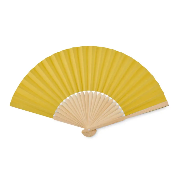 Leque em bambu com tecido de papel. O bambu é um material natural, a cor do item, o tamanho e a impressão podem variar.Leque de bambu