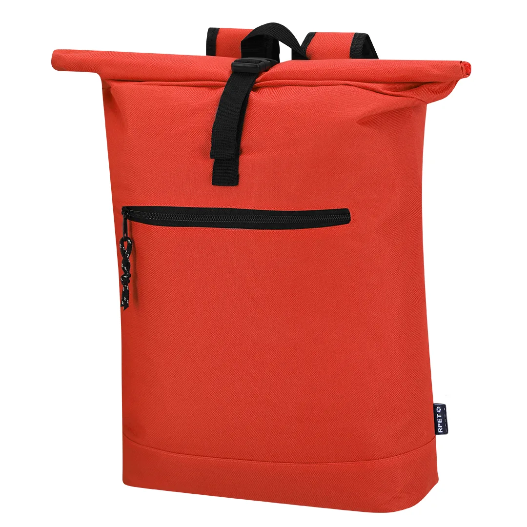 Mochila fabricada em resistente poliéster RPET 600D. Conta com um bolso principal que se fecha com fivela, com compartimento acolchoado para laptop de até 15 polegadas, e um bolso frontal adicional com fechamento em zíper. As cintas para os ombros são acolchoadas e ajustáveis. Logotipo RPET na etiqueta e com acessórios em preto.O material RPET é elaborado a partir de plástico reciclado, promovendo a reutilização de resíduos plásticos e ajudando na sustentabilidade do planeta.Poliéster 600D RPETBolso Acolchoado para Portátil. Parte Traseira e Alças Acolchoadas