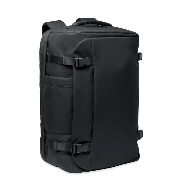 Mochila de viagem grande para computador portátil de 17'' em poliéster 600D RPET. Possui vários compartimentos, como um principal para roupa, dois acolchoados para portátil e tablet e muito mais. Painel traseiro almofadado, alça de ombro e pega de mão.Mala de mão grande para viagem
