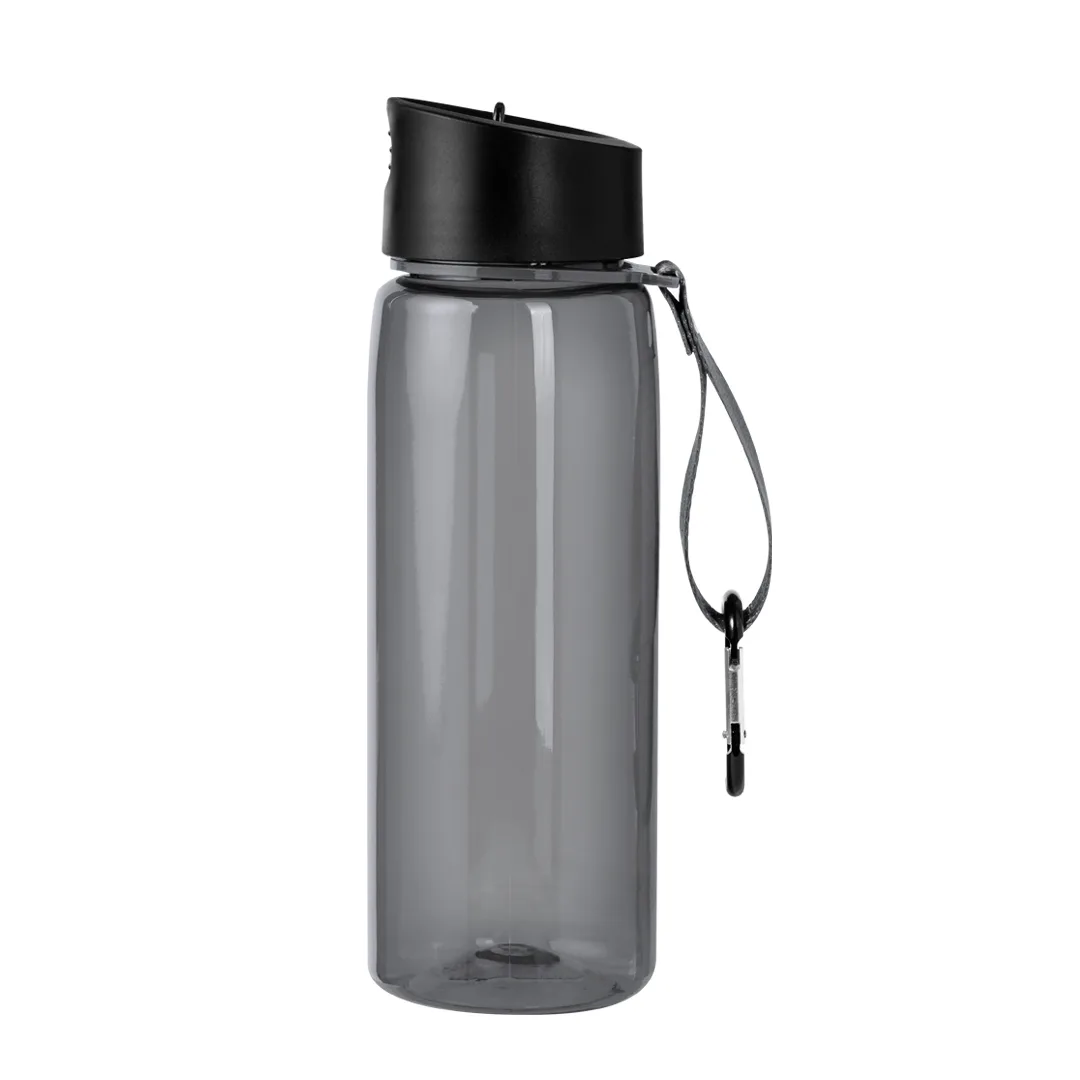 Ref: BEC84402MOGarrafa de 800 ml em RPET resistente e corpo com acabamento transparente em diversas cores. Tampa de rosca preta, com dispensador e dispensador dobrável. Com alça de transporte a condizer e mosquetão de metal para um transporte confortável. Disponível numa ampla gama de cores.O material RPET é elaborado a partir de plástico reciclado, para assim fomentar a reutilização de residuos plásticos e ayudar à sustentabilidade do planeta.