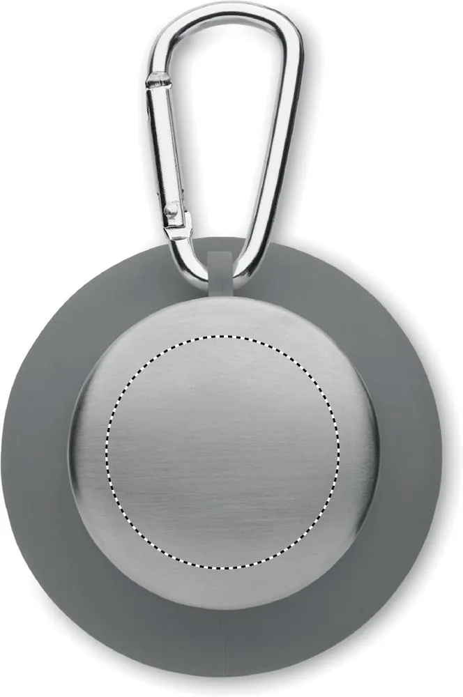 Garrafa de silicone rebatível com tampa de aço inoxidável e mosquetão de alumínio. O mosquetão não é para escalada (uso não profissional). Capacidade: 500 ml.Garrafa rebatível 500ml