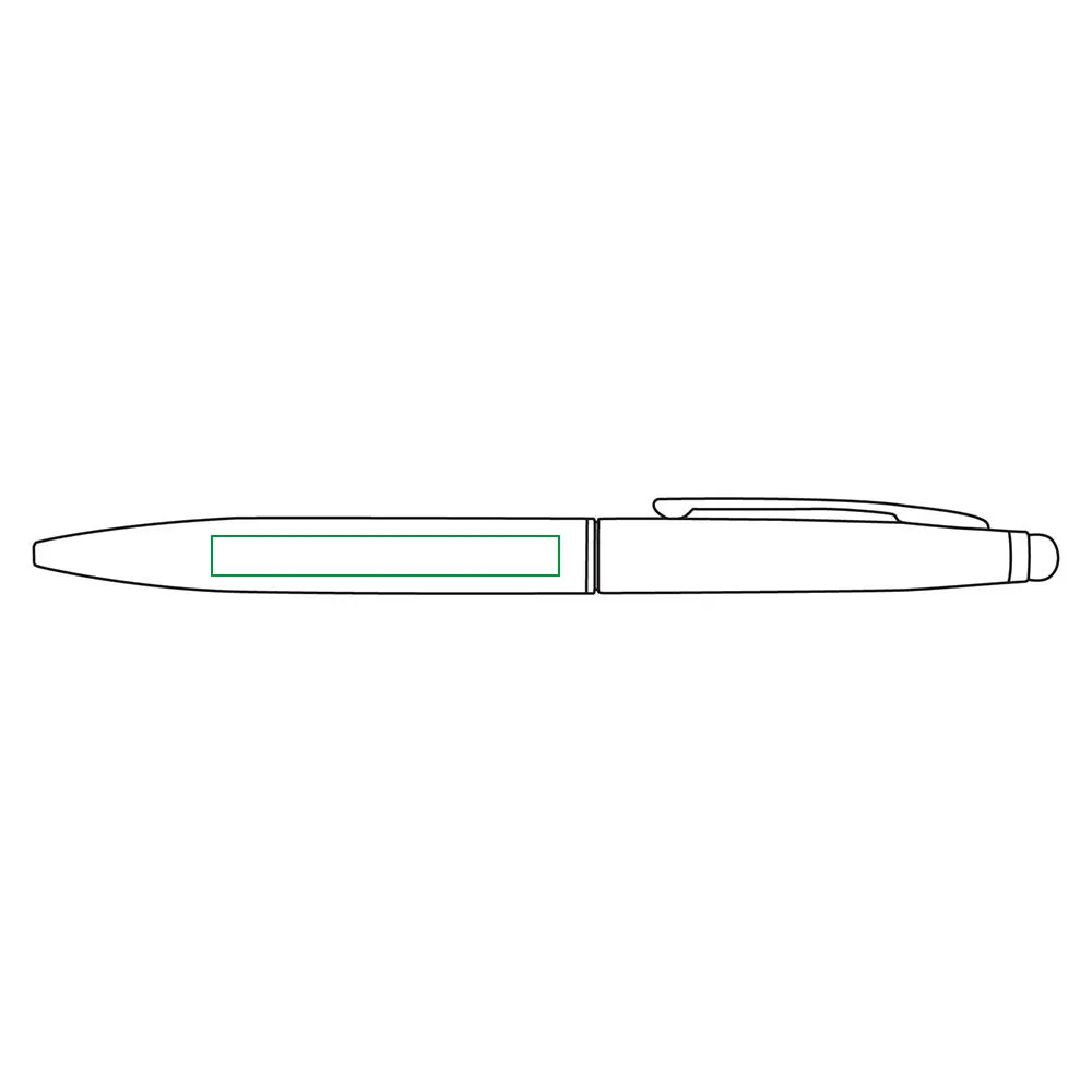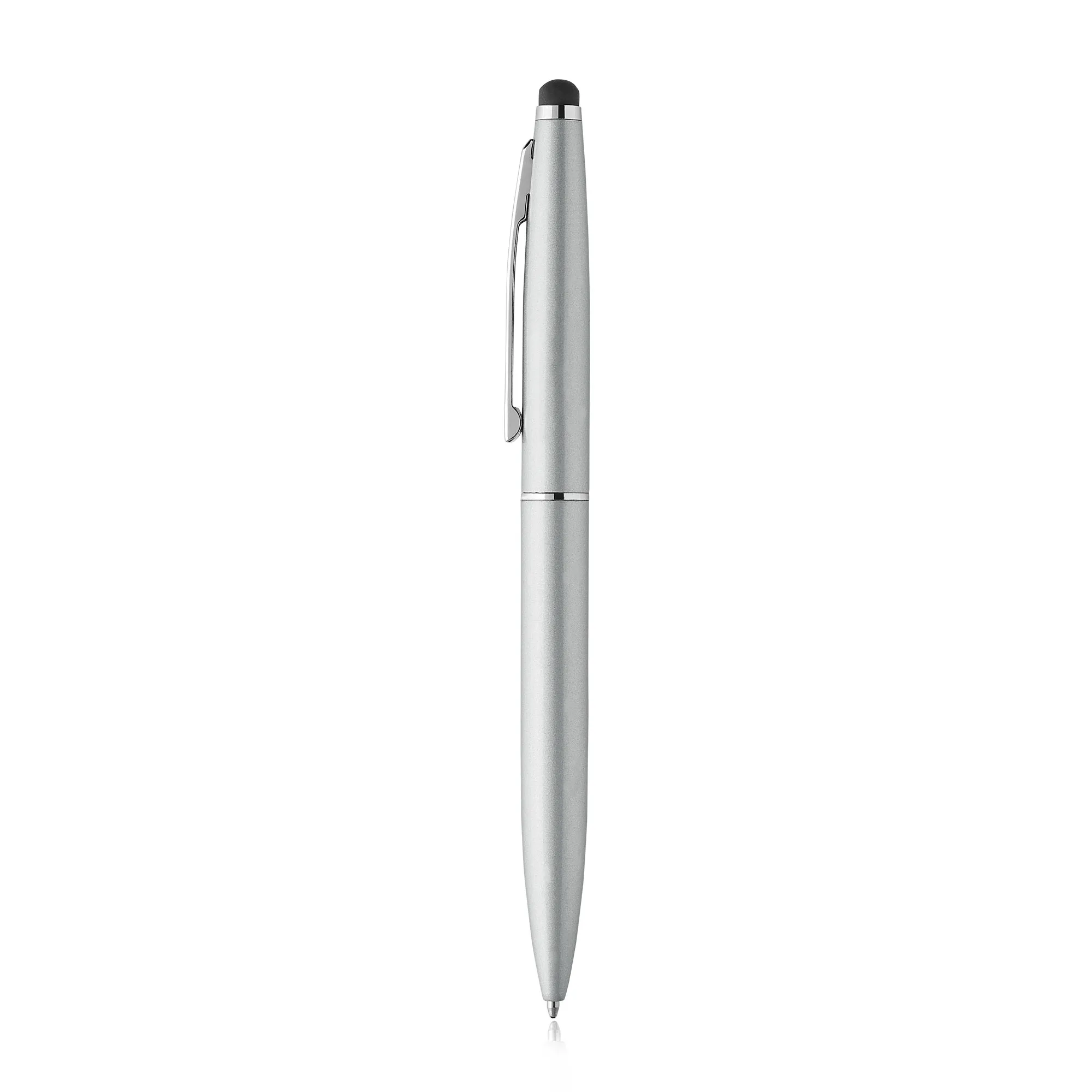 Esferográfica de alumínio e touch. Escrita azul e sistema twist. Corpo e touch colorido. Detalhes prateados.Esferográfica em alumínio, com touch