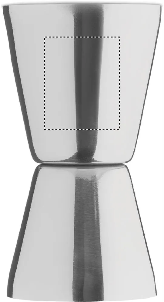 Jarra de aço inoxidável de dupla face. Capacidade: 25 e 40 ml.Jarra de aço inoxidável