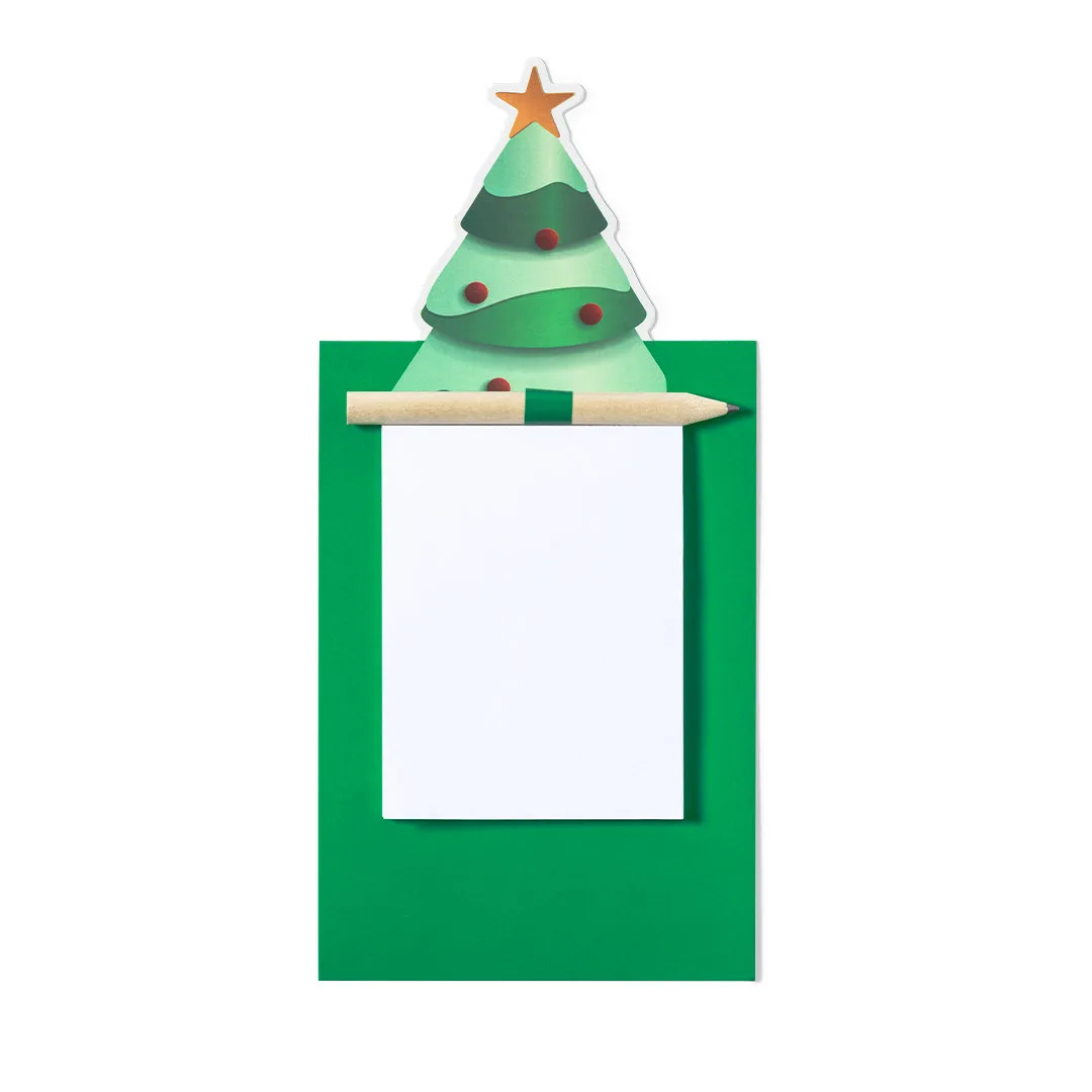 Magnético com bloco de notas em design divertido de árvore de natal. Inclui 40 folhas lisas e lápis de madeira natural.Bloco 40 Folhas. Lápis Incluída